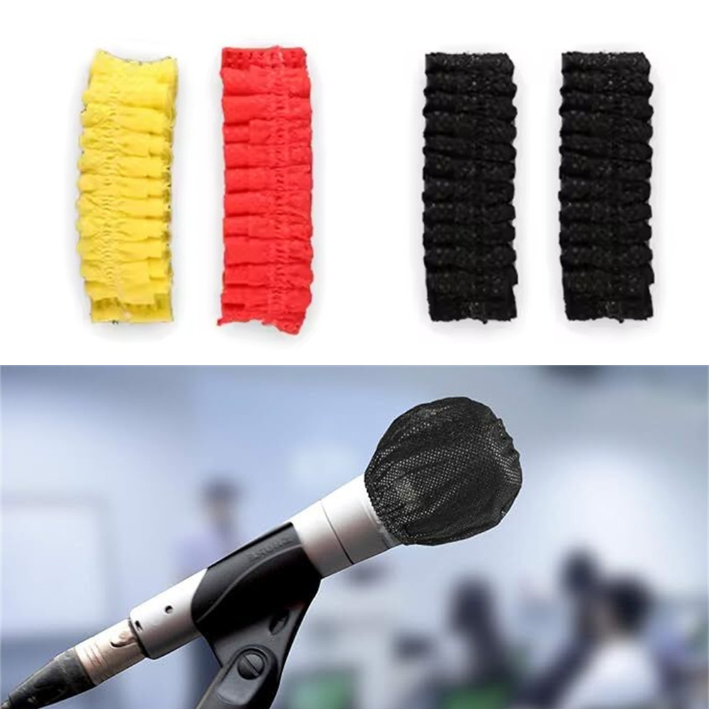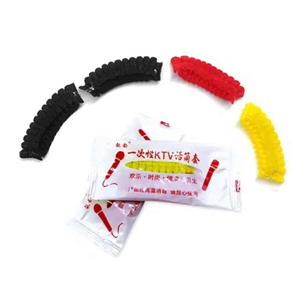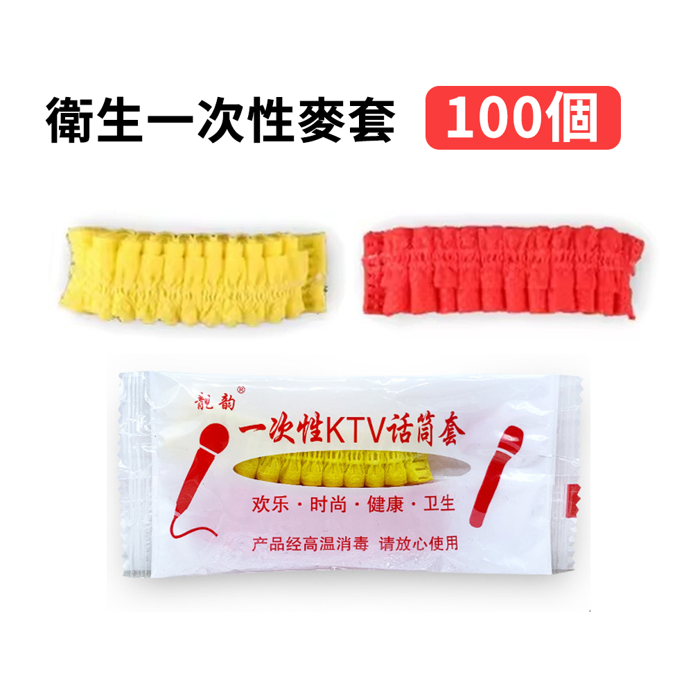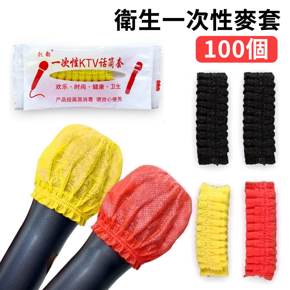 一次性衛生麥克風套 紅色+黃色 配對一包 共100個 優選無紡布:阻隔口水、減少細菌 高彈力,皮筋收口,緊密貼合