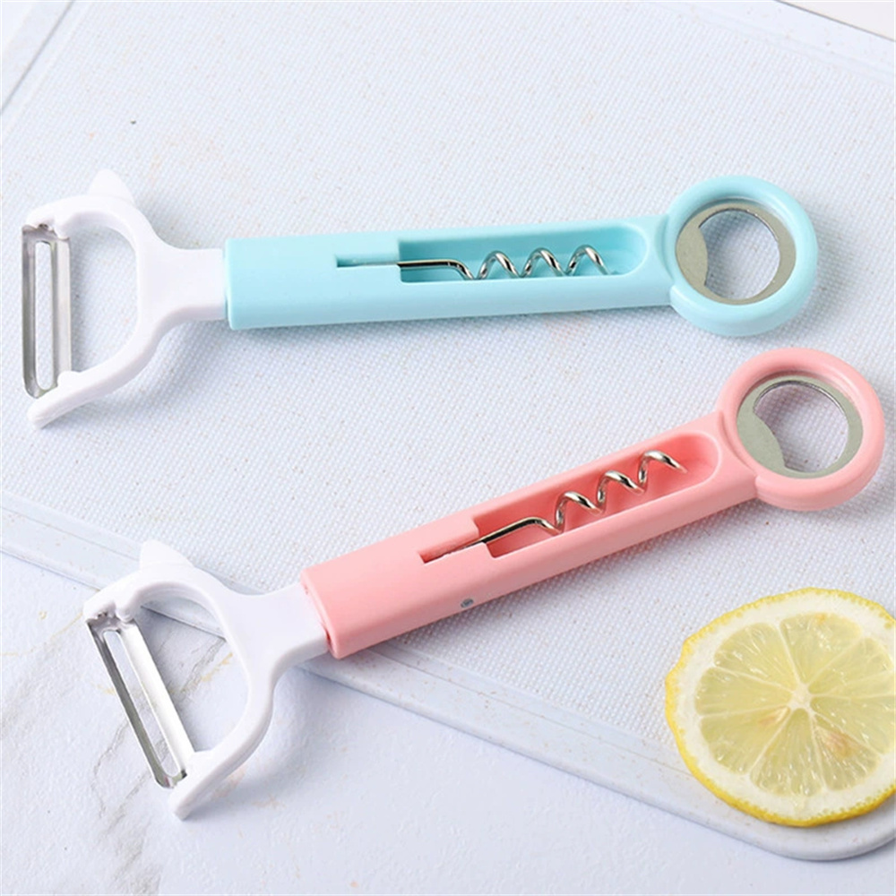 三合一多功能削皮刀 紅酒鉆頭+啤酒起蓋器+削皮刀 一物多用,居家好物
