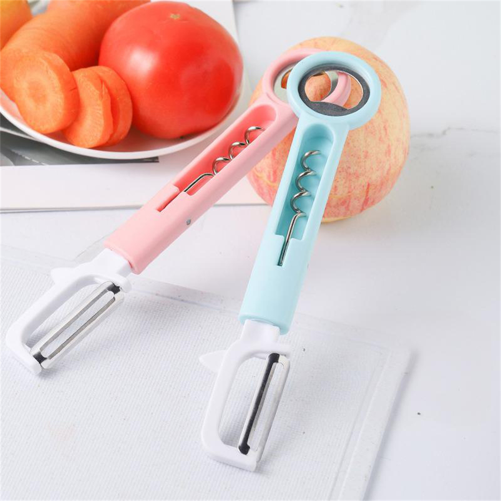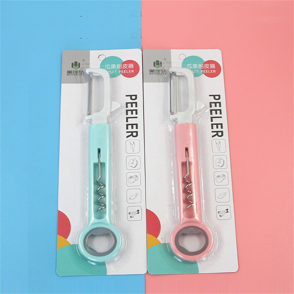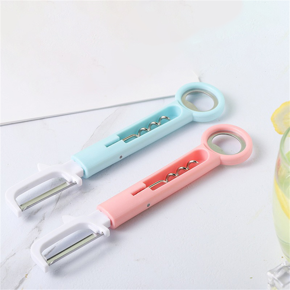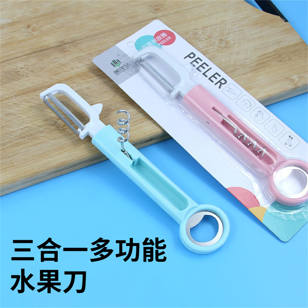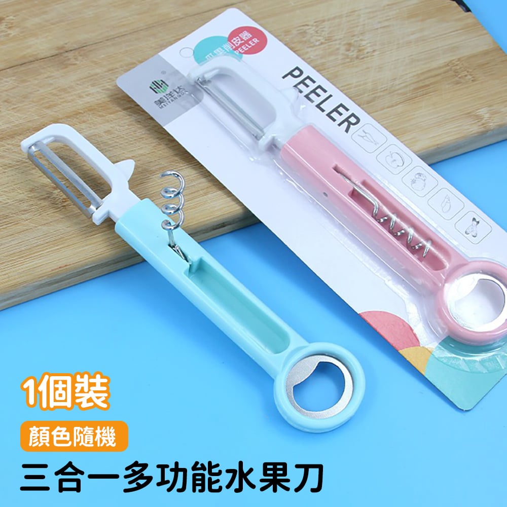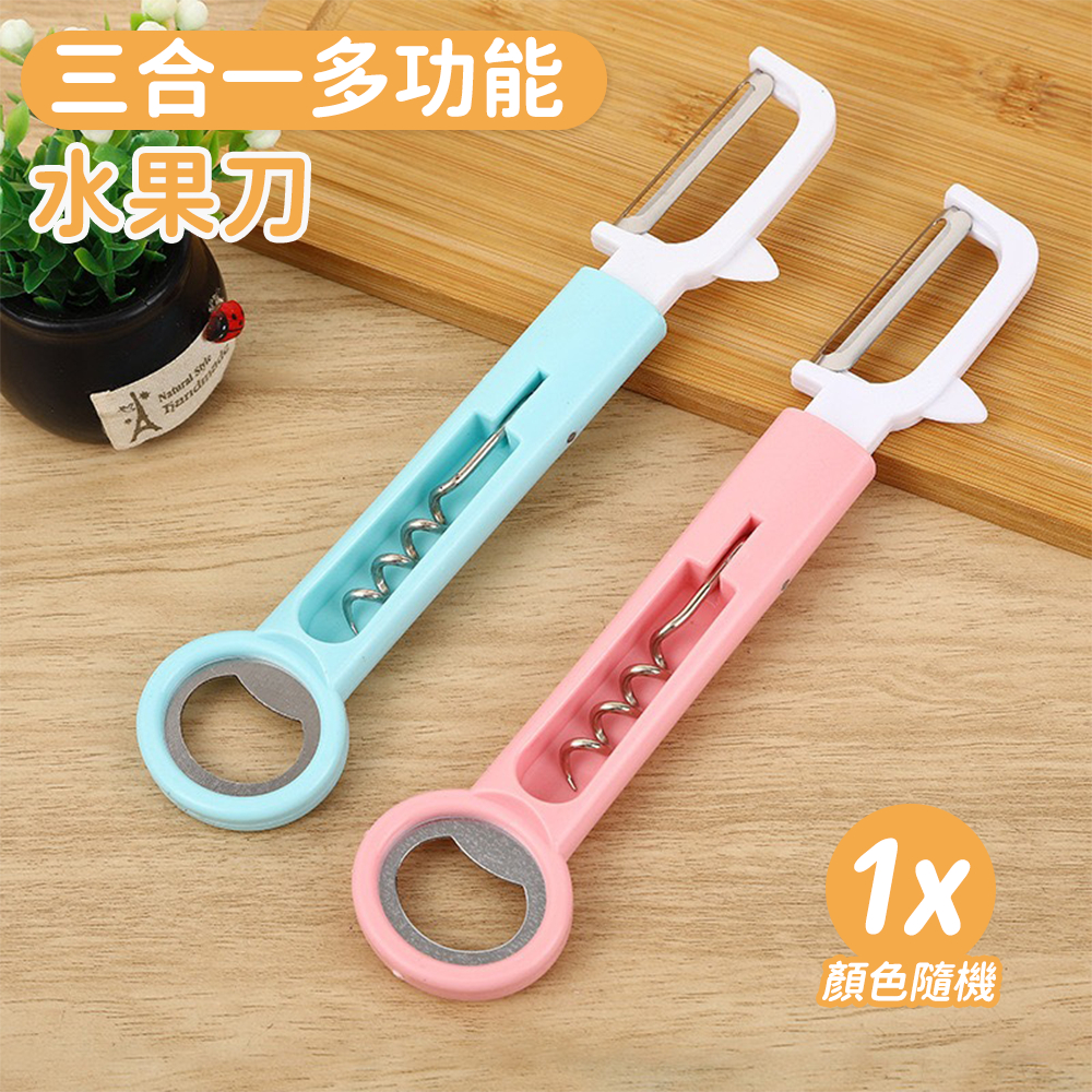 三合一多功能水果刀 削皮刀 刨皮刀 紅酒開瓶器 啤酒開瓶器 生果刨 [平行進口] HK2499