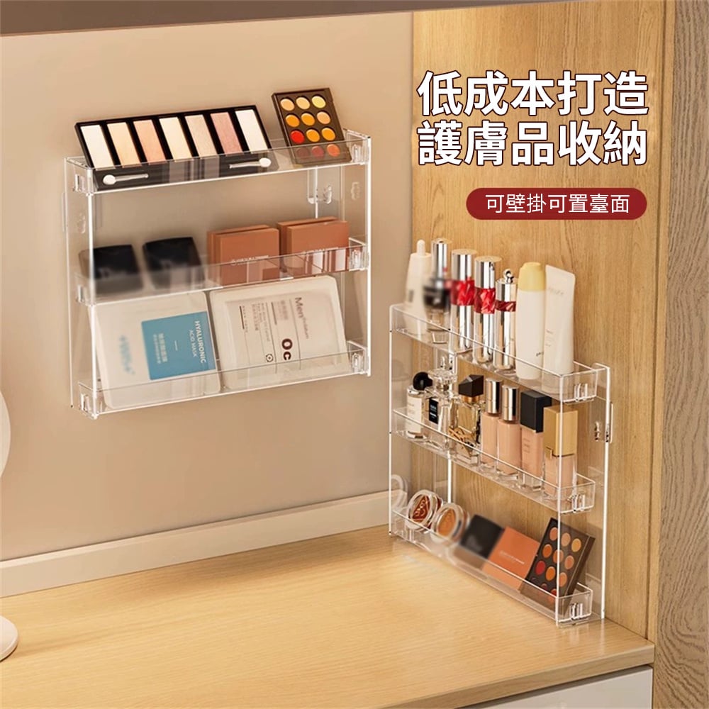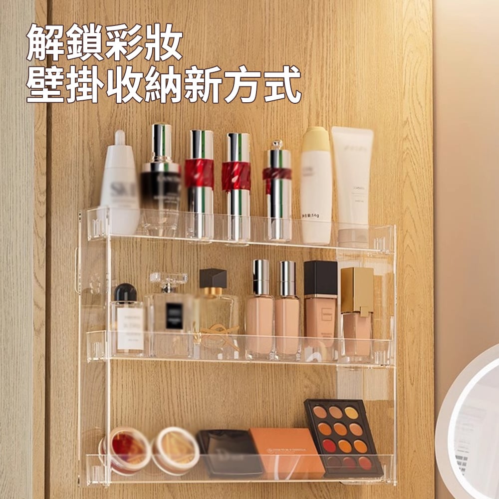 亞克力壁掛展示架 3層 墻壁收納,擴展檯面空間 多場景收納: 化妝品、護膚品、盲盒展示、文具收納等