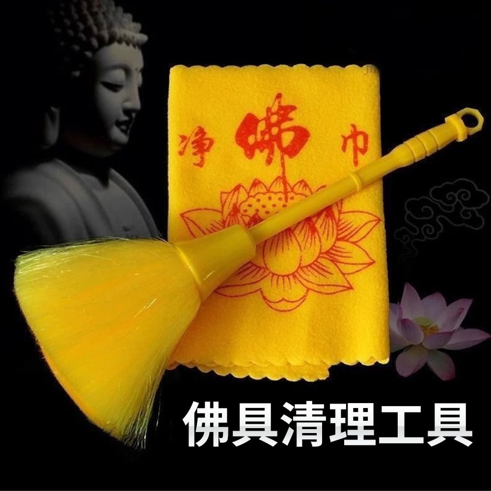 佛具清理工具 除塵撣子 神臺清潔用品 神枱灰塵清潔 抹布 清潔掃+清潔布 [平行進口] HK2623