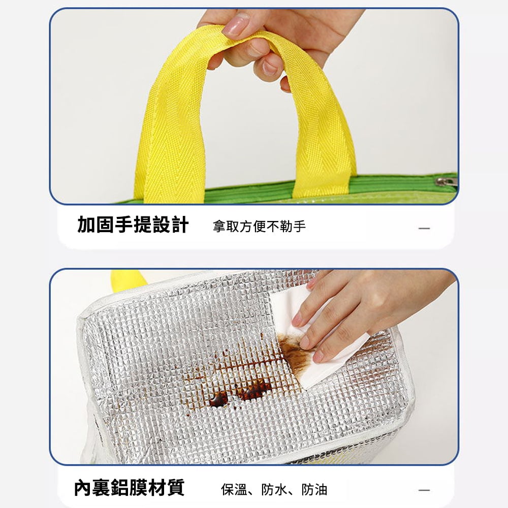 紫色/粉色/綠色 三色可選 內里鋁膜材質,保溫、防污、防水 加固手提設計 順滑拉鏈 滿足日常所需