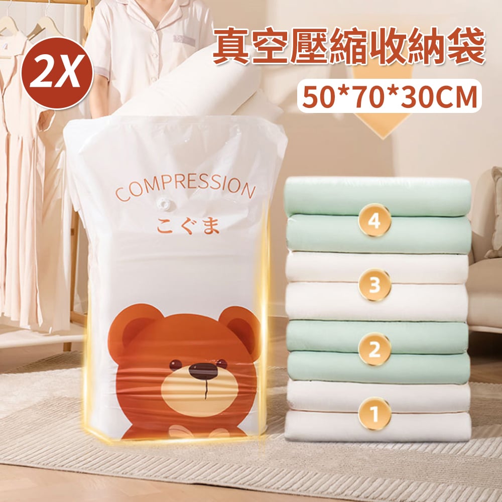 家居必備 2個50*70*30cm 真空壓縮收納袋 立體大容量 兩用氣閥門 衣櫃大瘦身,輕鬆騰出空間 免抽氣泵設計,三秒排氣 有韌性不易爛