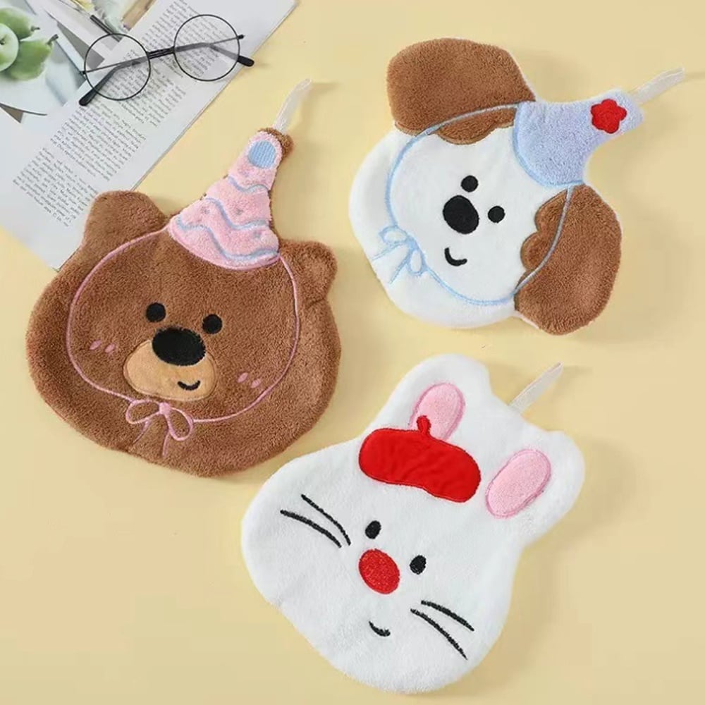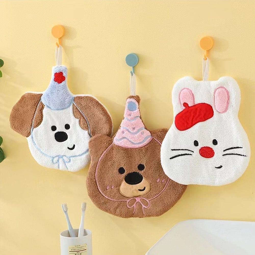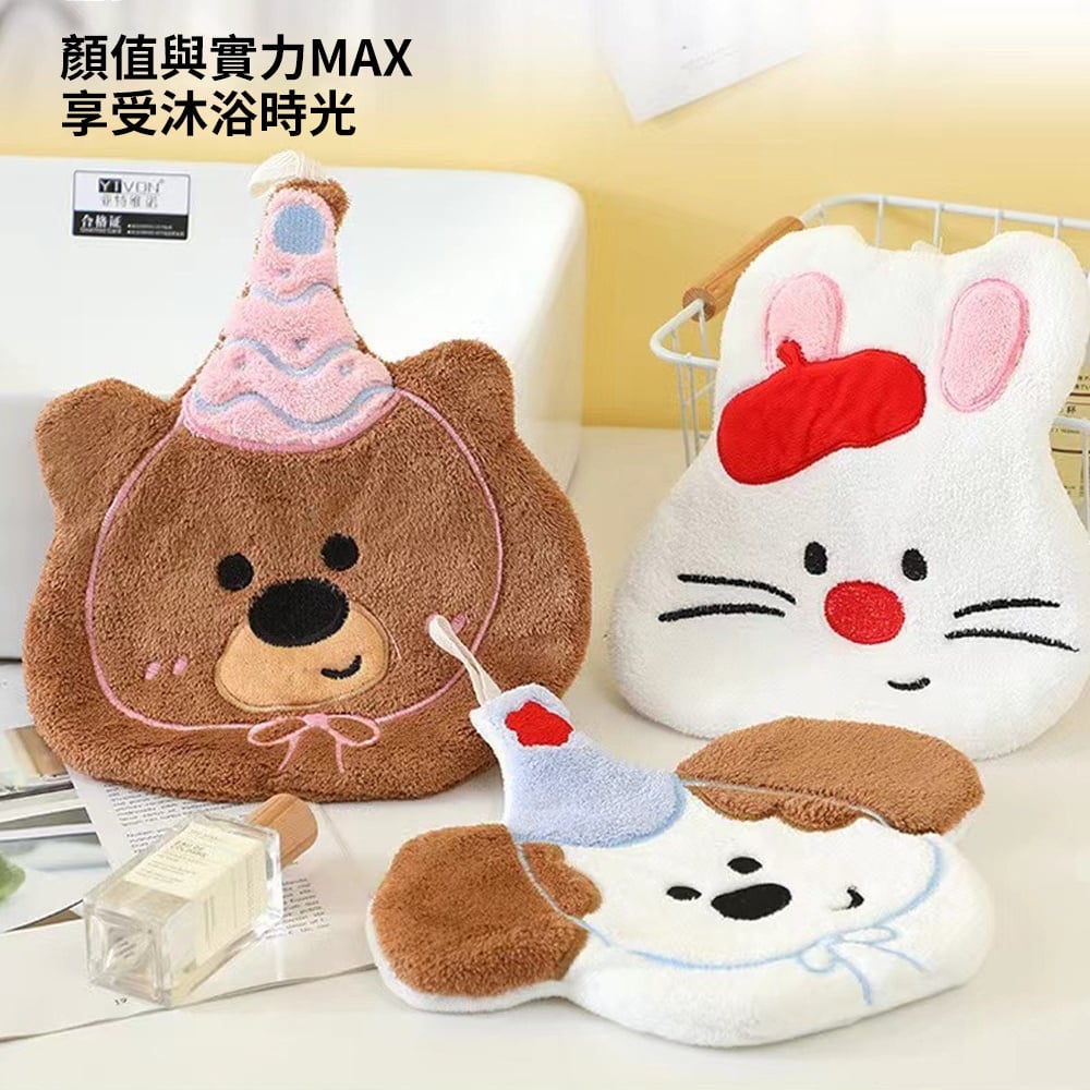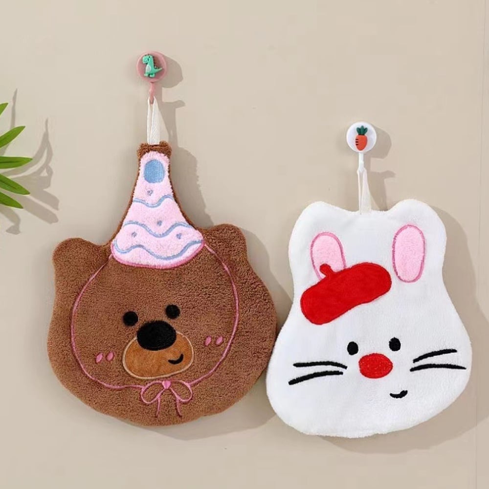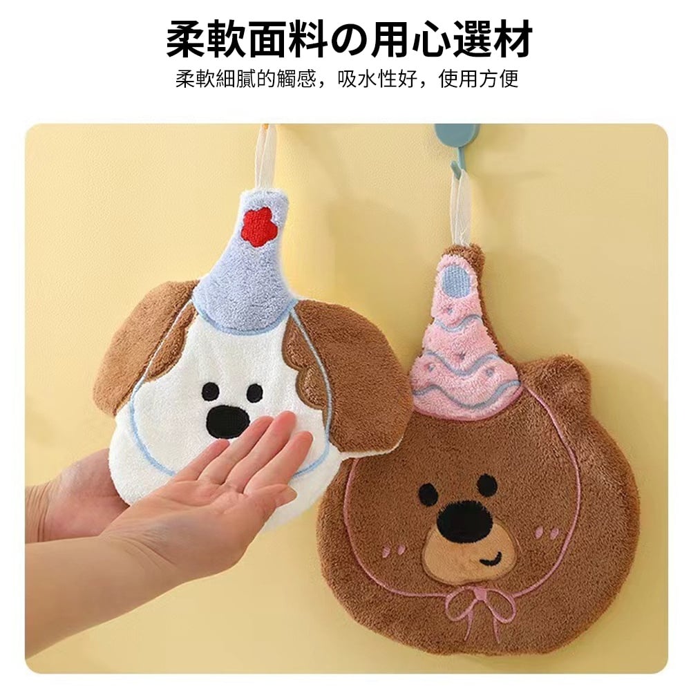 卡通動物可掛式擦手巾 柔軟舒適 輕薄透氣 吸水性好 透氣性好 可掛於廚房、衛生間等抹手