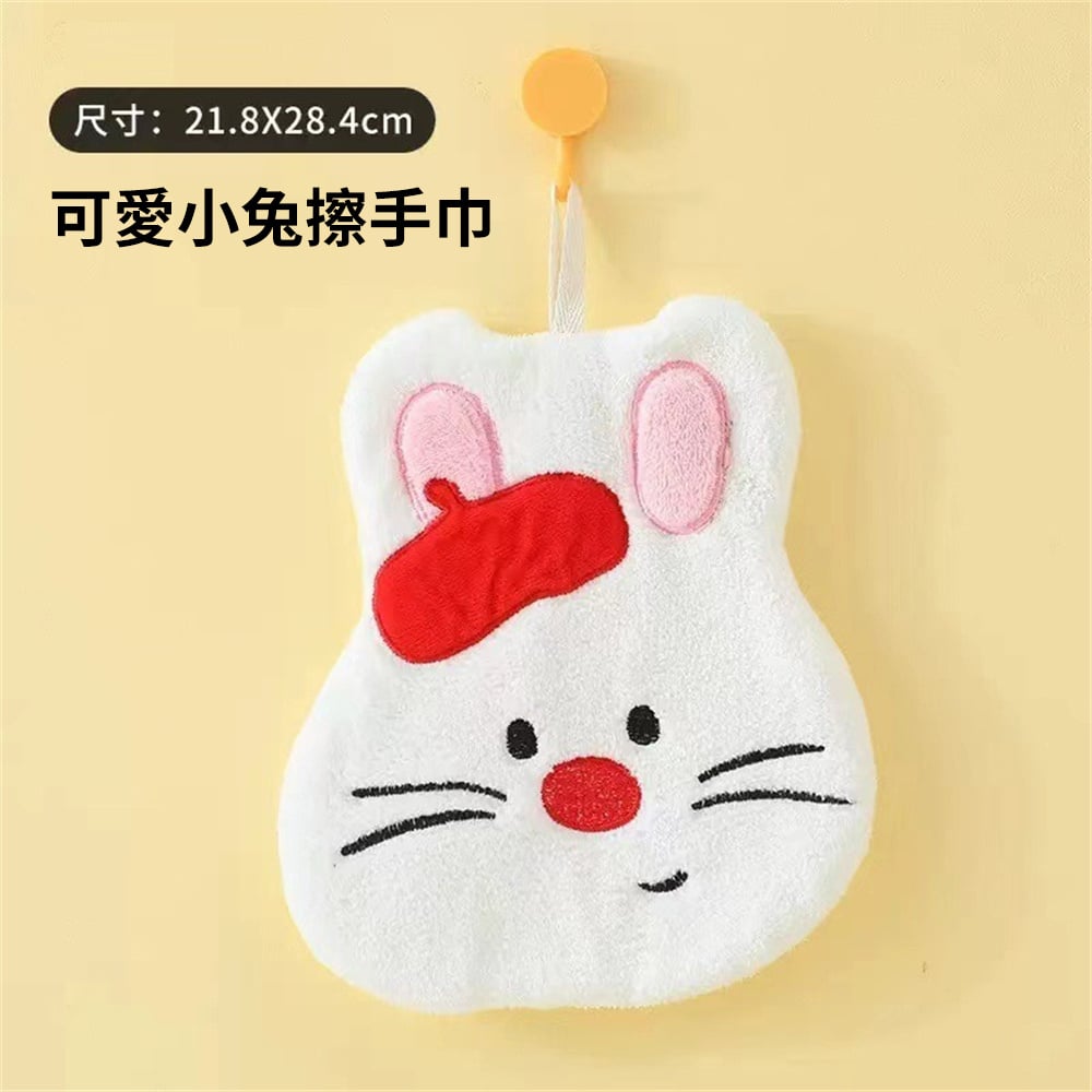 卡通可掛式擦手巾 吸水抹手巾 擦手毛巾 廚房抹布 衛生間抹手布 白色小兔 [平行进口] HK2645