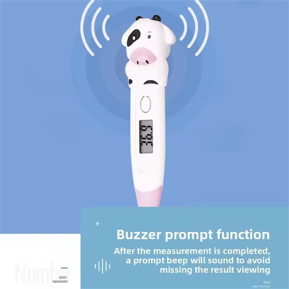 卡通體溫計 奶牛造型 隨時隨地,一鍵測溫 蜂鳴提示功能、自動關機功能、記憶功能:最後一次測量值 蜂鳴提示、可自動關機不耗電測溫更舒適