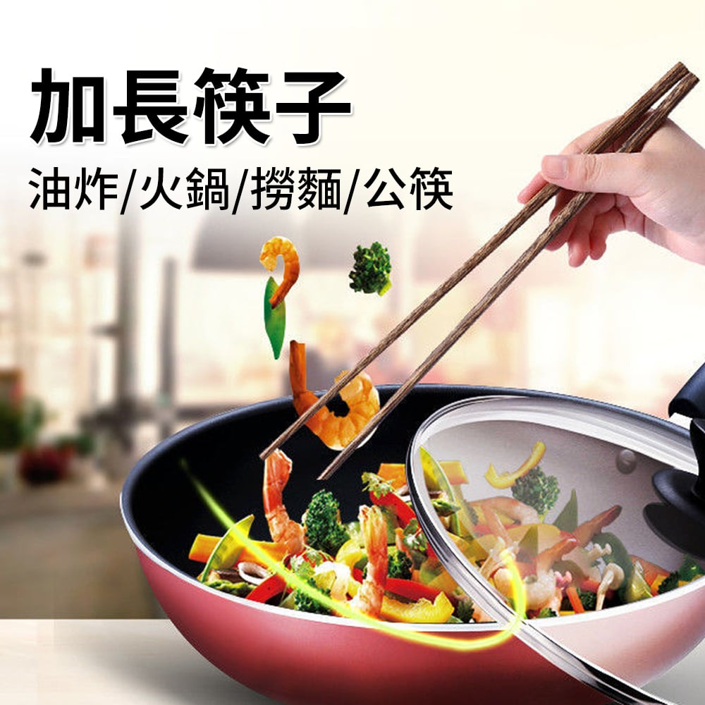 原木加長筷子 油炸 火鍋 撈麵 公筷 打邊爐 筷子 防燙手 [平行進口] HK2512