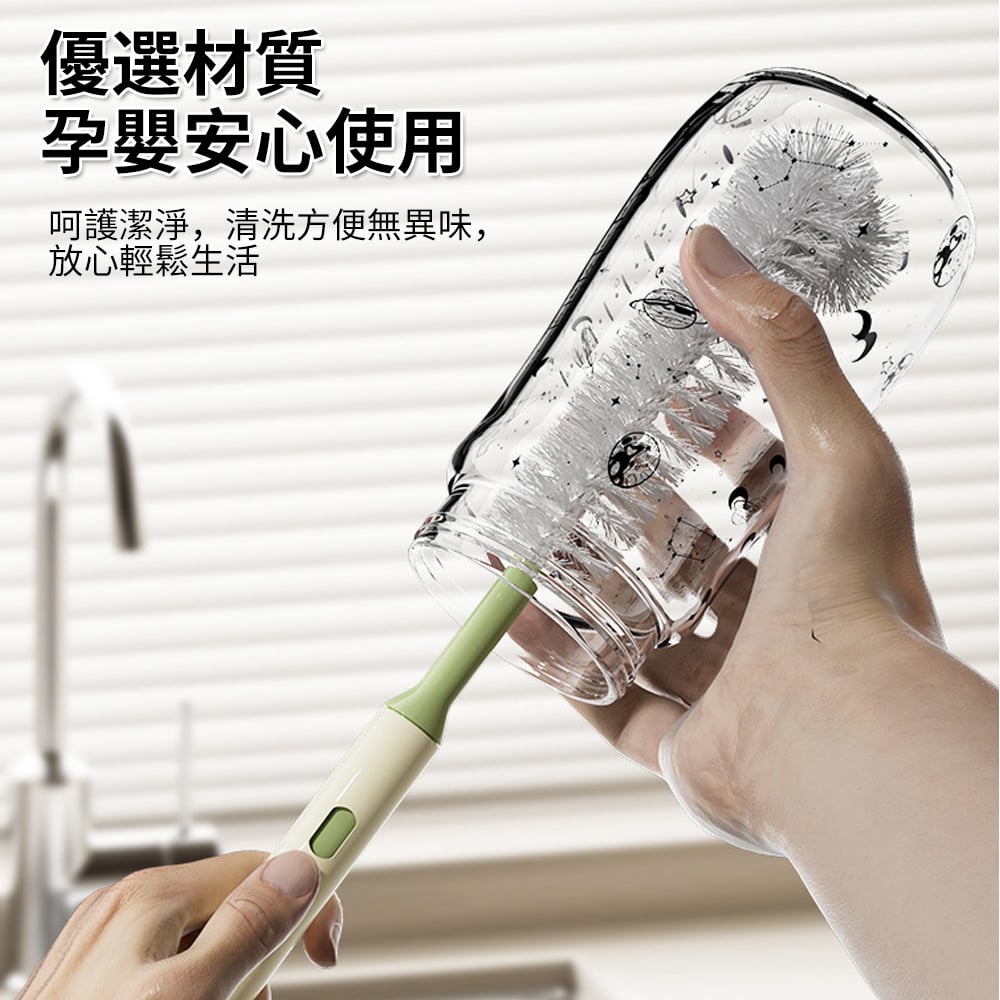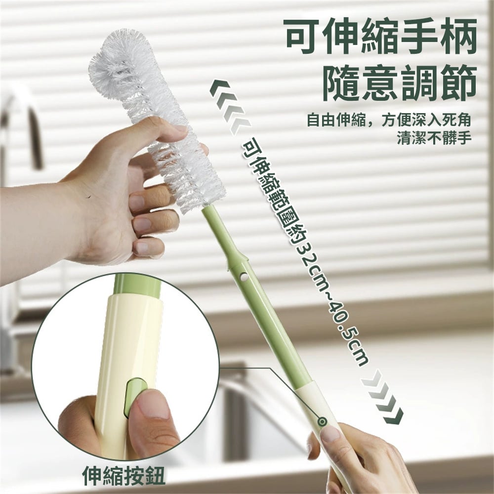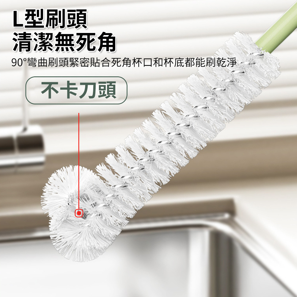 可伸縮加長手柄,遠離刀片不傷手 90° 彎曲刷頭緊密貼合死角,杯口和杯底都能刷乾淨 適用範圍廣 破壁機、玻璃杯、奶樽、燒水壺等