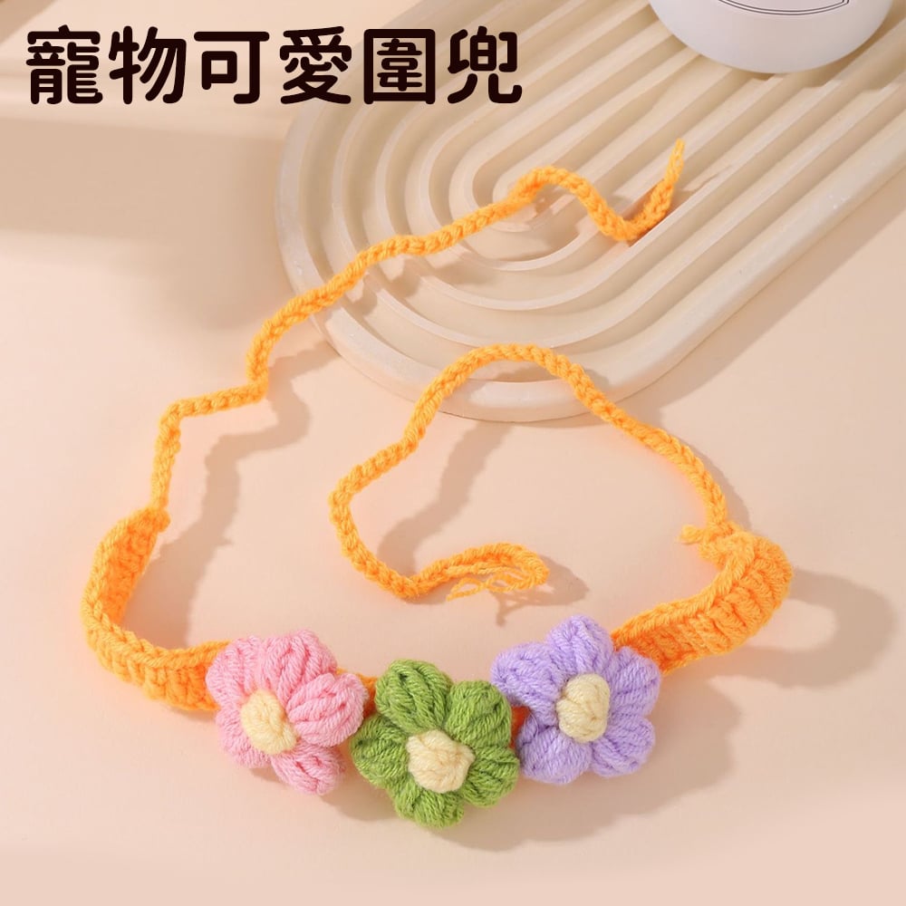 黃色小花款 適用於小型貓貓、小型狗狗 手工diy針織 超可愛裝飾頸圈