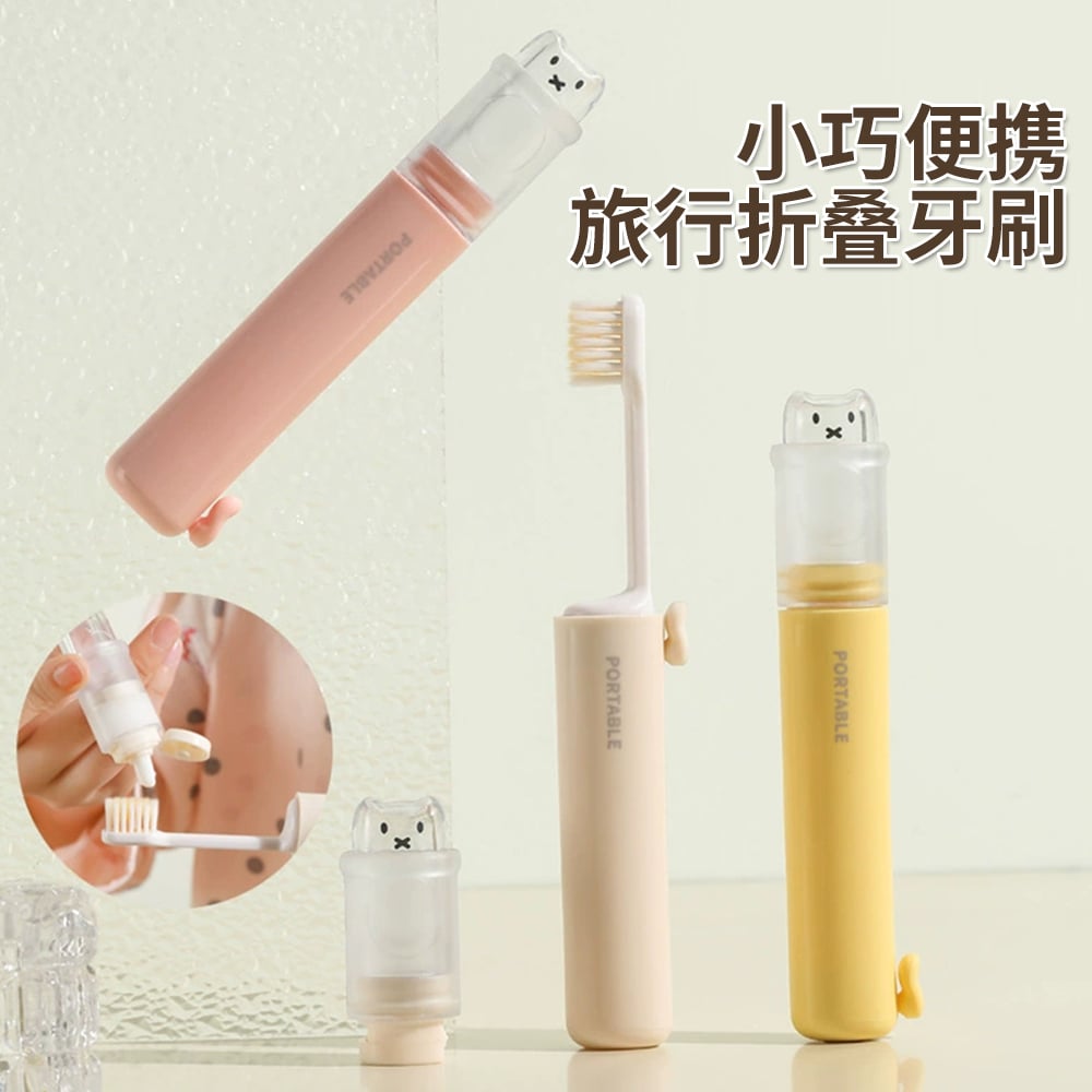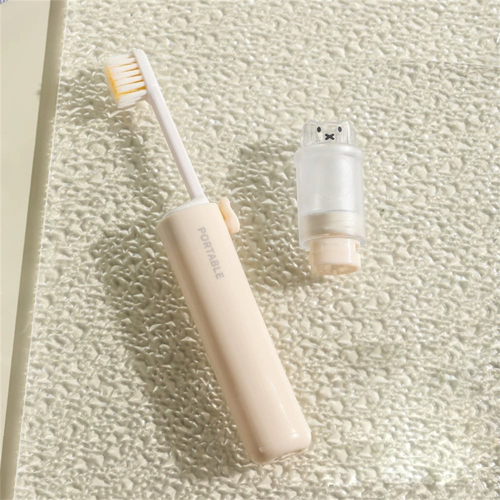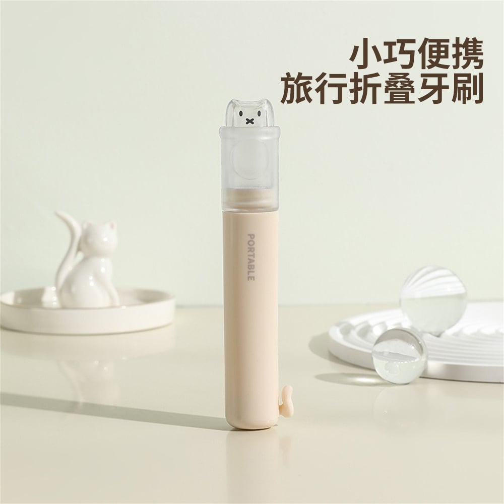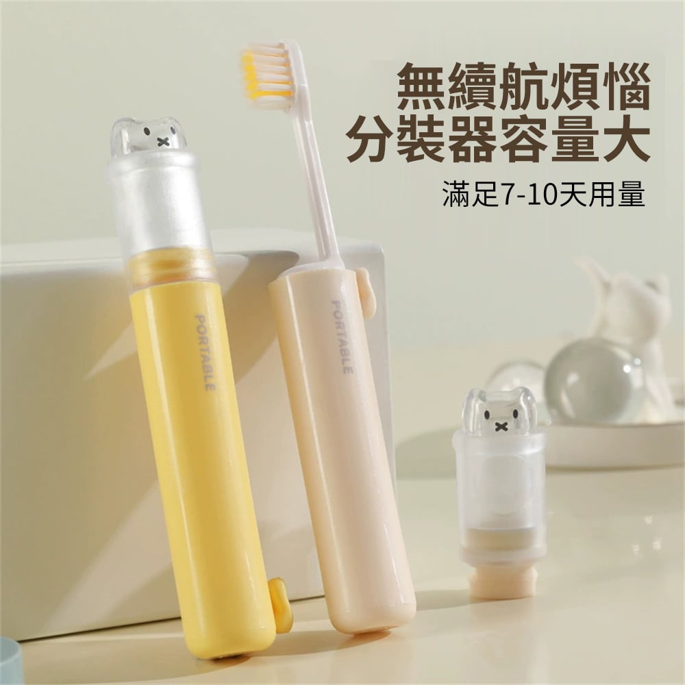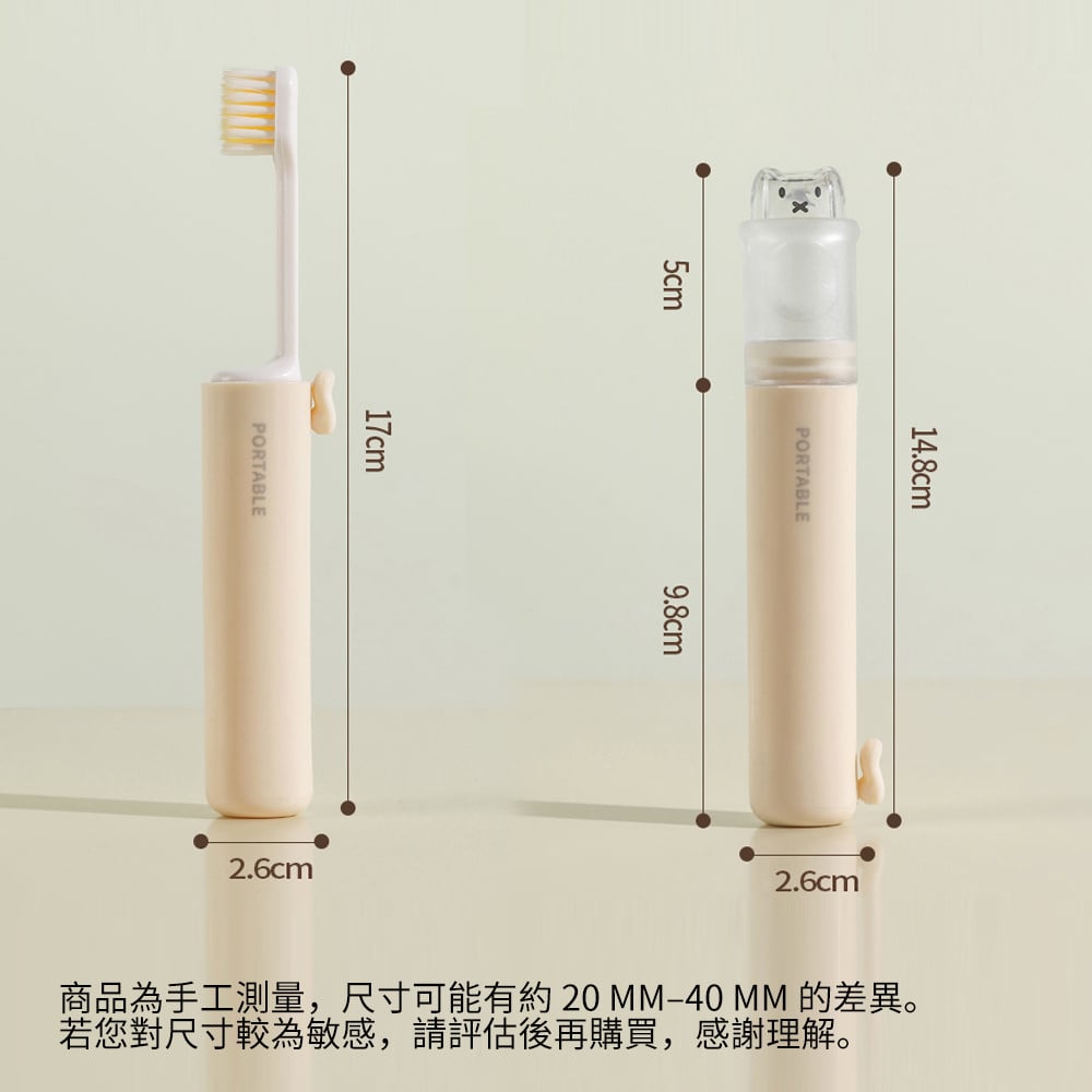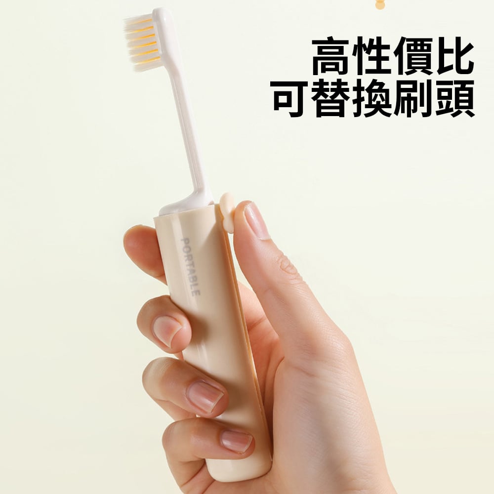 可折疊便攜牙刷 旅行牙刷套裝 牙刷牙膏盒 軟毛牙刷 米色 [平行進口] HK2659