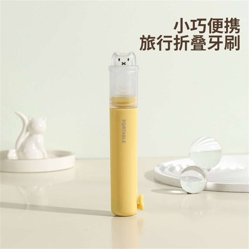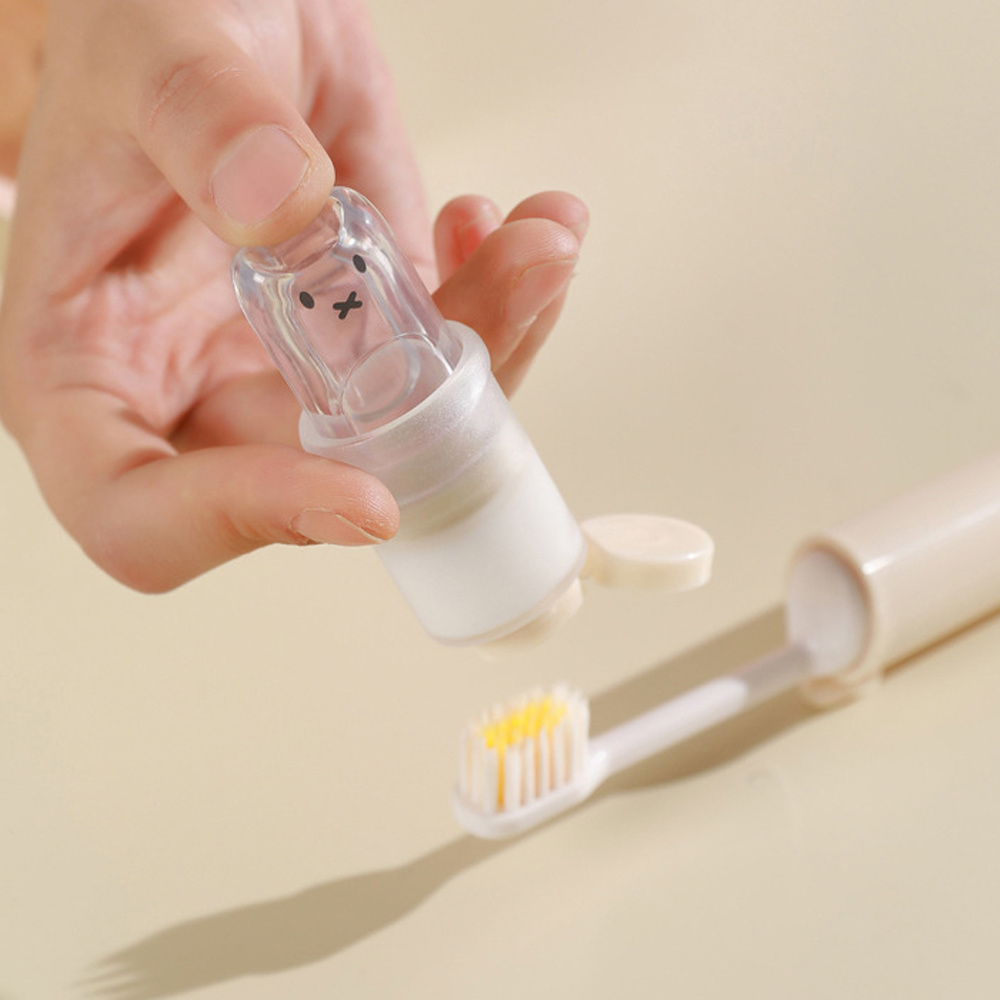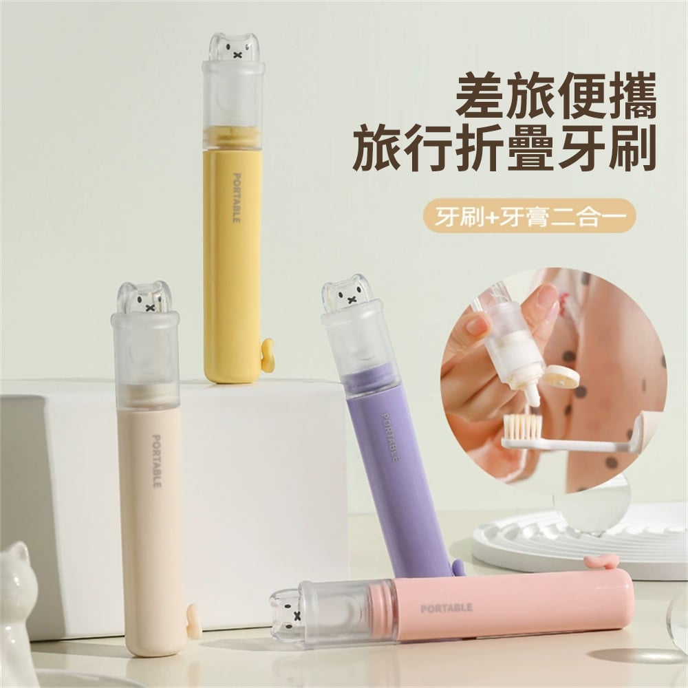 米色/黃色/粉色 三選一 小巧便攜,出差旅行變簡單 牙膏牙刷二合一 PBT細軟刷毛 不傷牙齦 適用於:旅行、出差、戶外、小巧便利方便攜帶