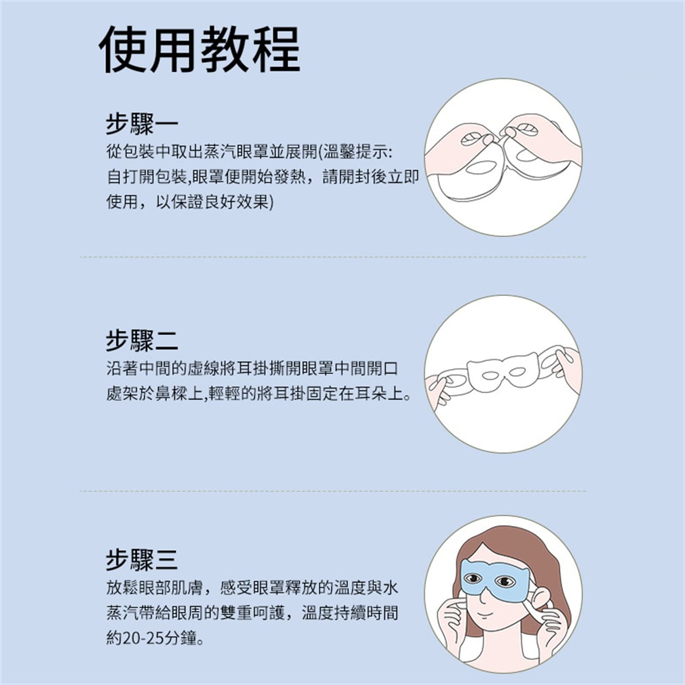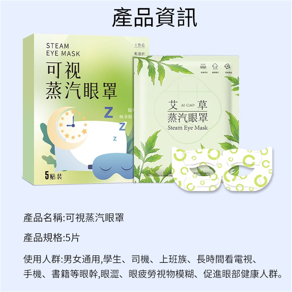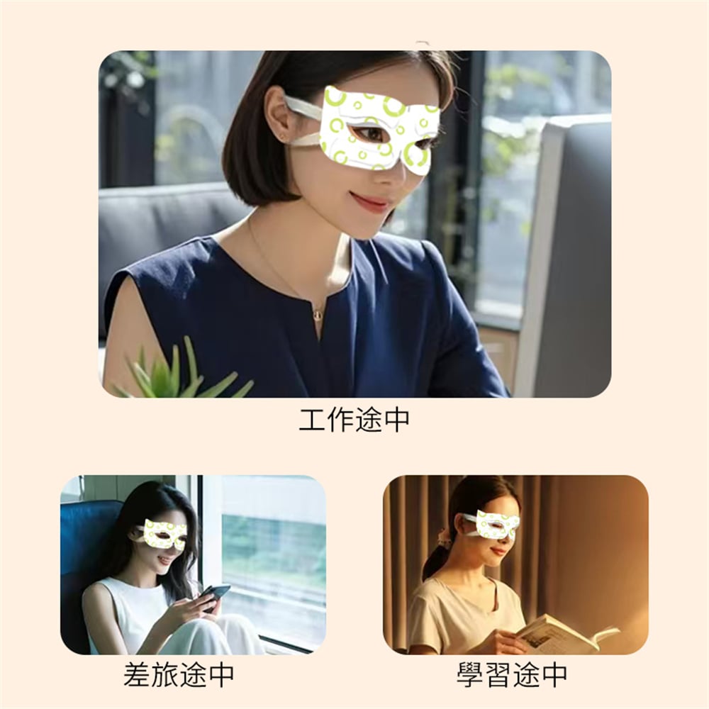 可視蒸汽眼罩 緩解疲勞、恆溫持續發熱30分裝 可視設計,用眼熱敷兩不誤 使用人群:男女通用,學生、司機、上班族、長時間看電視、手機、書籍等眼乾、眼澀、眼疲勞、視物模糊、促進眼部健康人群。