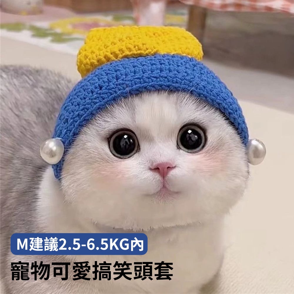 珍珠少女帽子 建議:2.5-6.5kg內 針織頭套道具頭飾 適用於愛寵拍照超可愛
