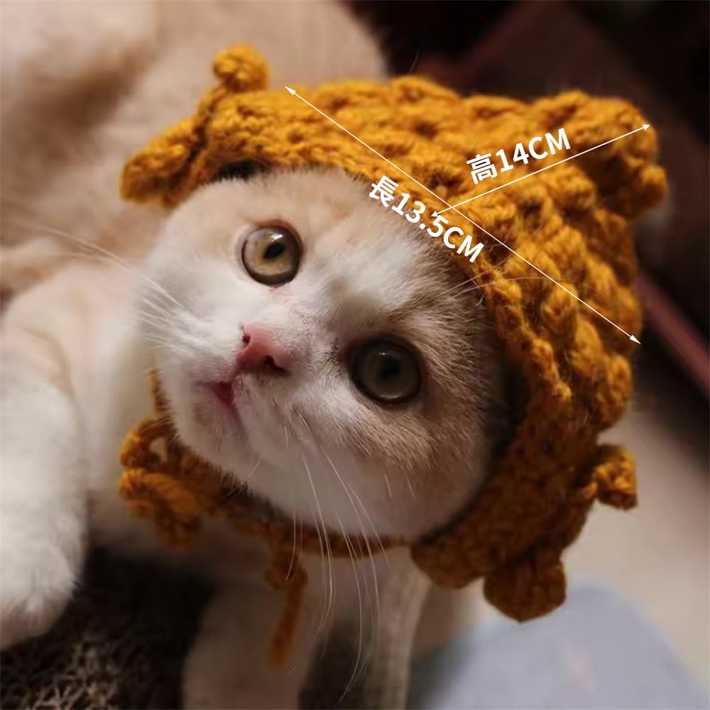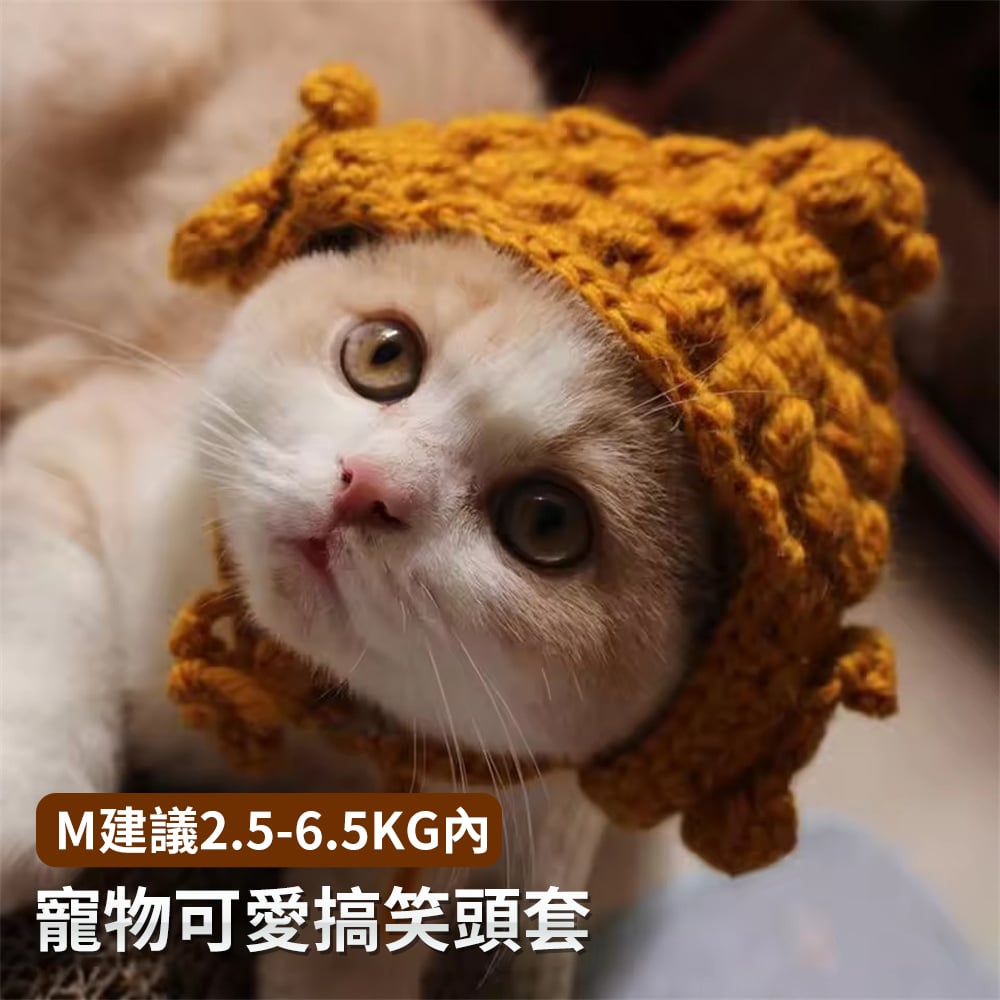 寵物可愛頭套 貓貓頭套 狗狗頭套 針織帽子 搞笑變身 道具頭飾 [平行進口] HK2546