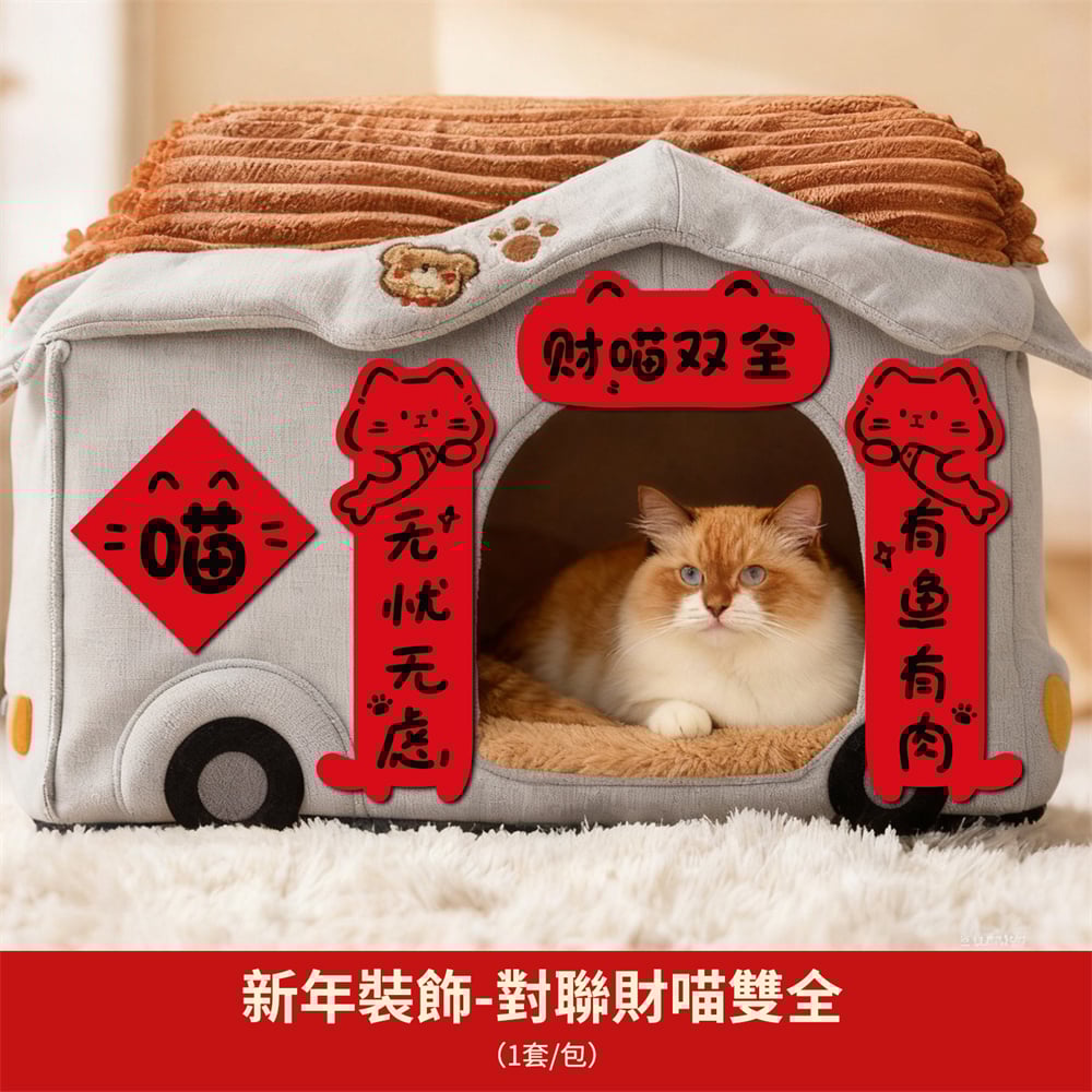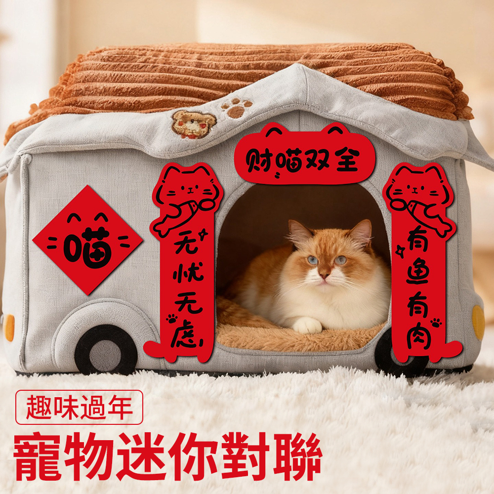 寵物對聯 新年春聯 迷你對聯 趣味寵物門聯 揮春 紙質門貼 [平行進口] HK2625