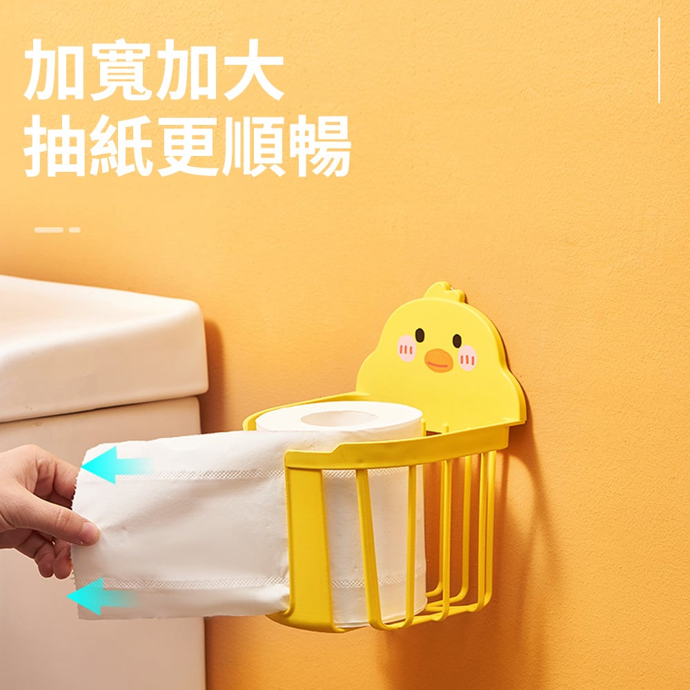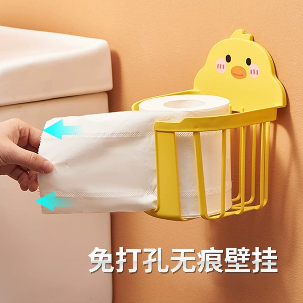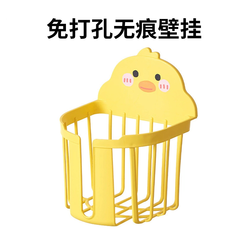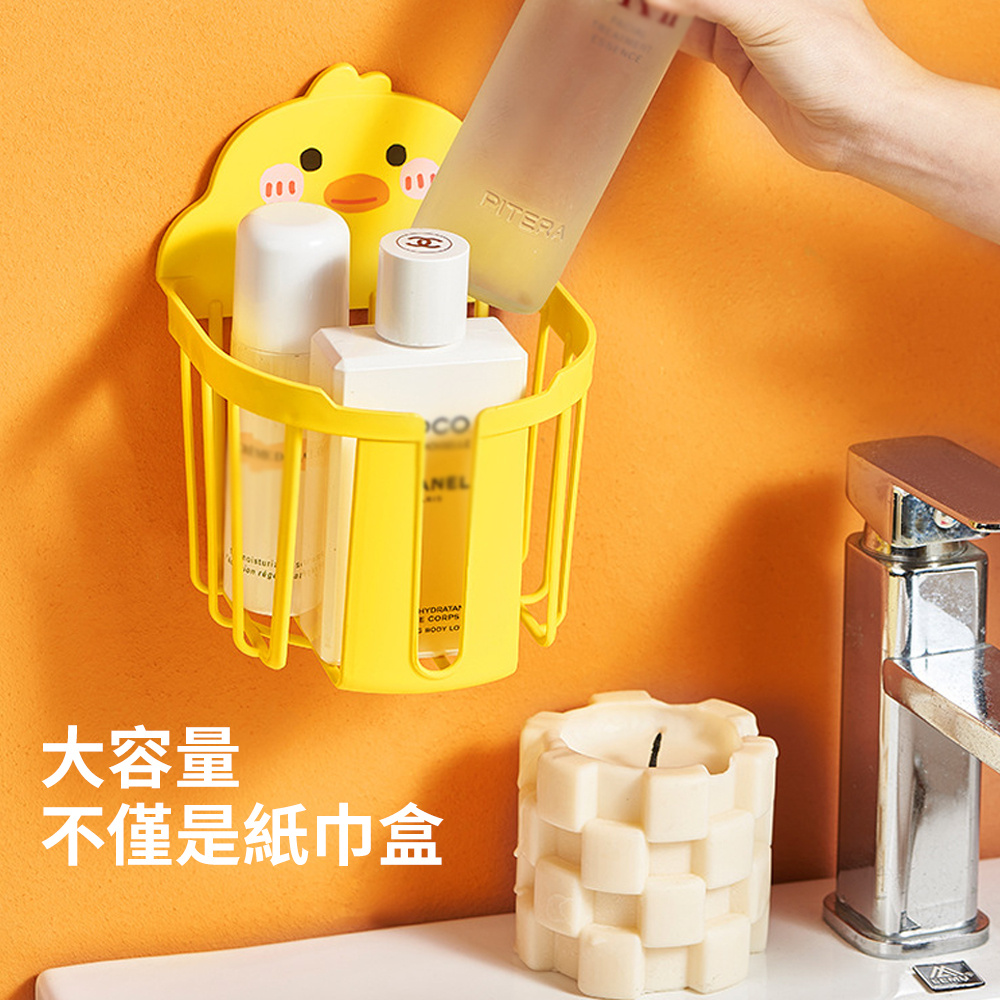 小黄鸭纸巾置物架 纸巾盒 无痕贴抽纸盒 纸巾架 圆形 [平行進口] HK2486