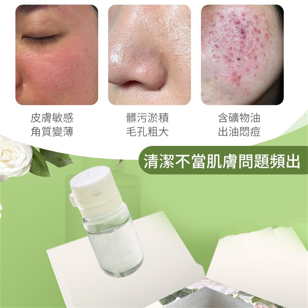 養膚植萃油,輕鬆卸妝 2ml*10支 產品功效: 舒適輕盈,富含山茶籽油萃取精華,清潔肌膚,泡沫豐富細膩,有效清潔面部彩妝污垢及油脂,令肌膚清爽勻淨,嬌嫩柔皙