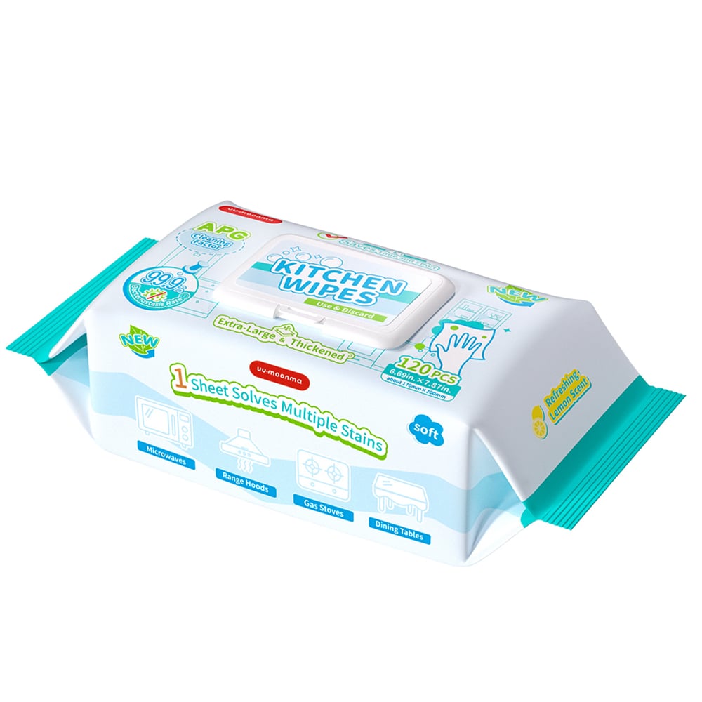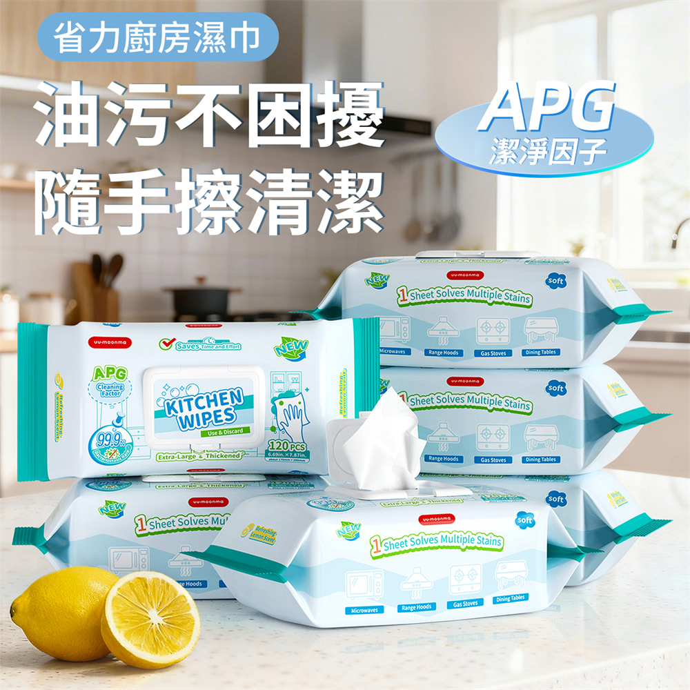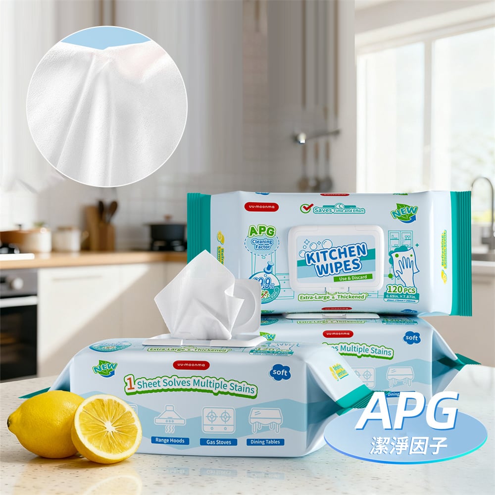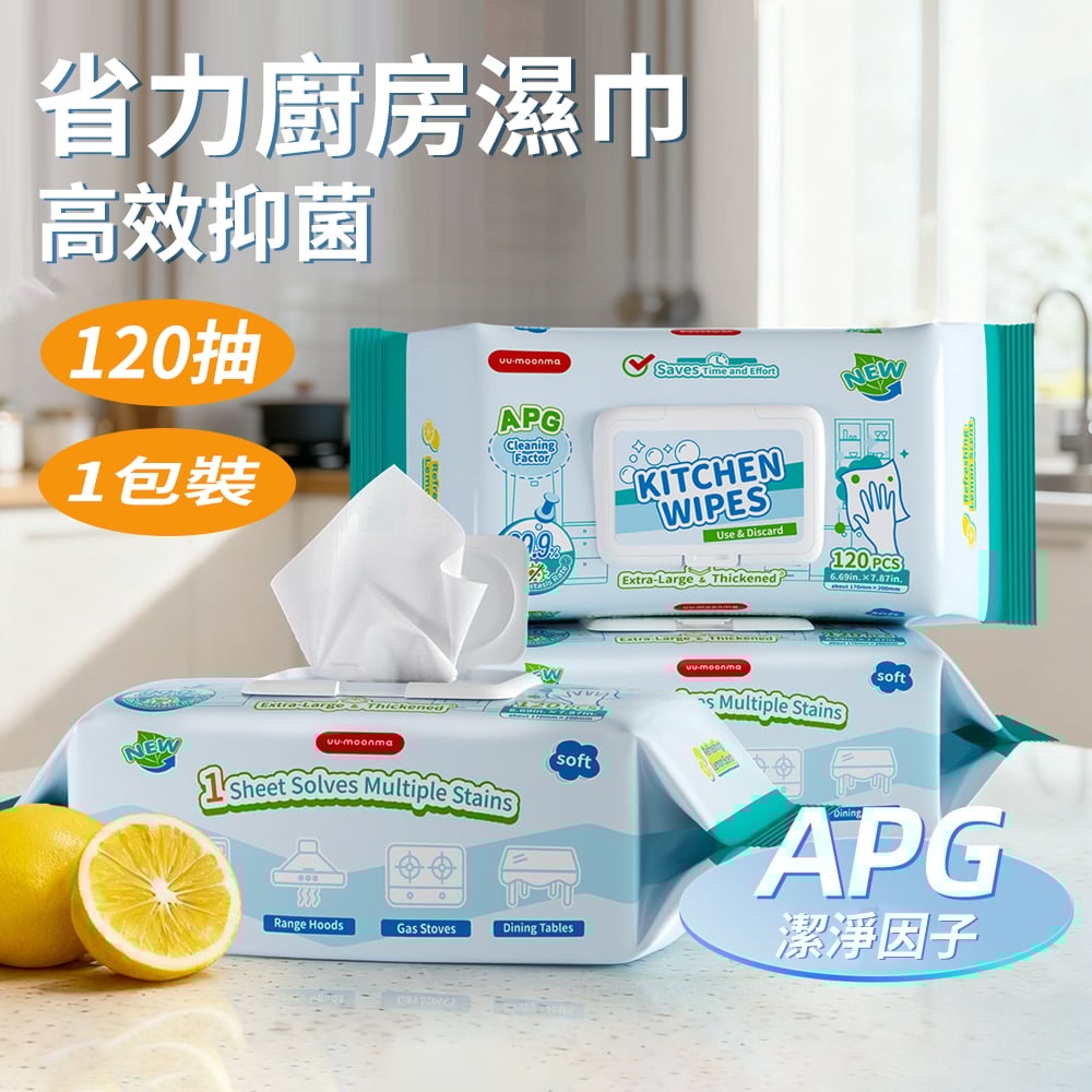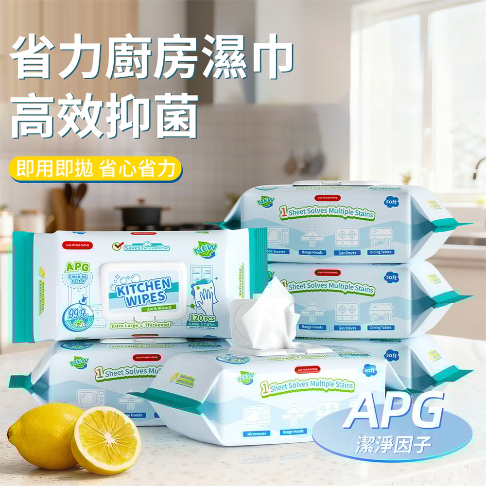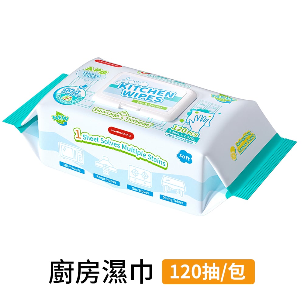 廚房濕紙巾 一次性清潔抹布 去油污濕巾 抹檯 油煙機 灶台 抽取式 清潔濕紙巾 120抽 [平行进口] HK2650