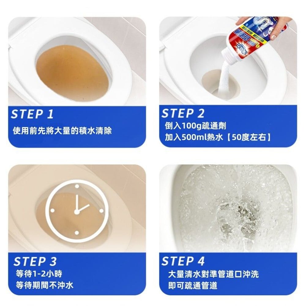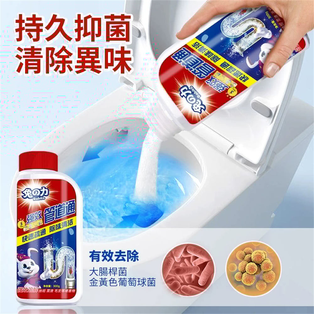 強力管道疏通劑 下水道疏通粉 水喉通渠劑 油污 殘渣 毛髮 溶解劑 通渠粉 除菌除臭 300g [平行進口] HK2668