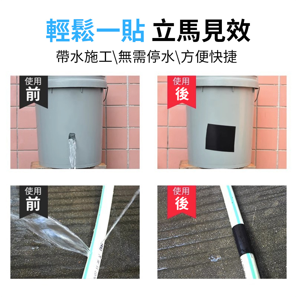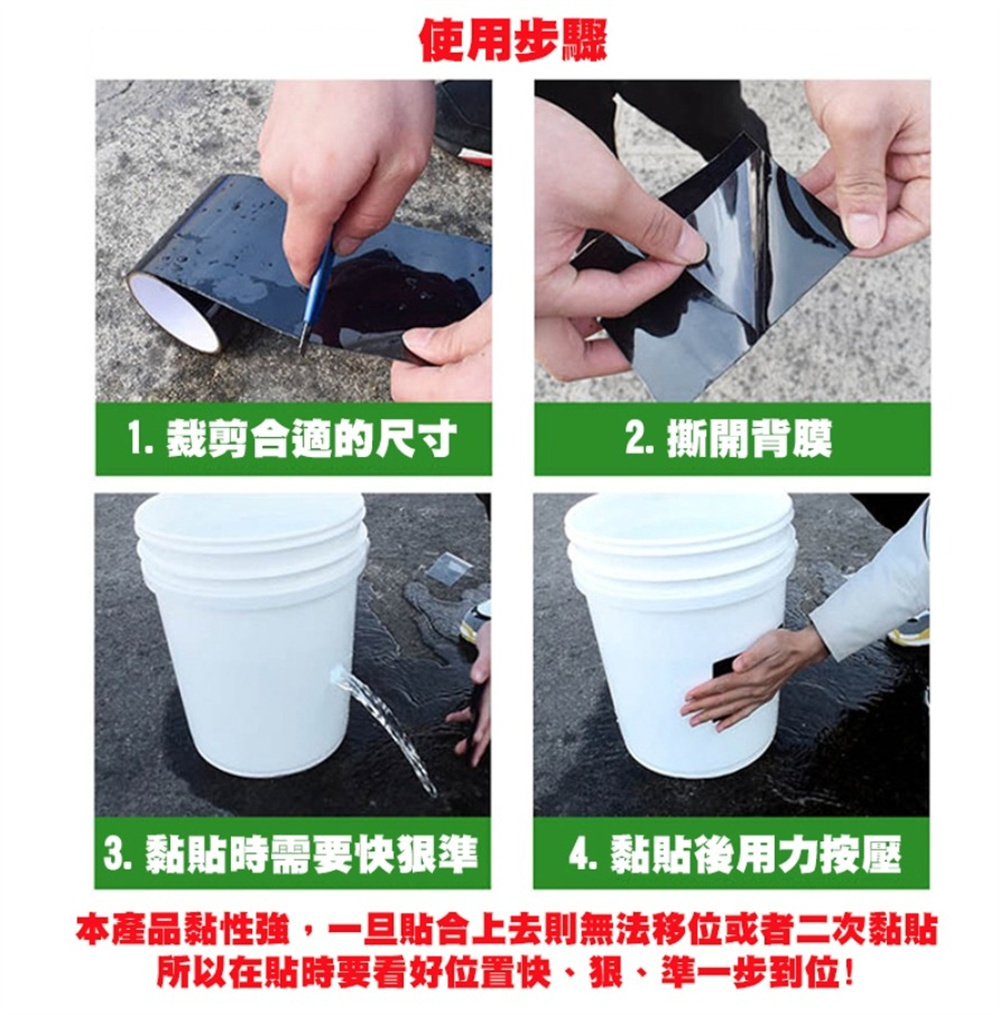 白色 /黑色 兩色可選 強力防水貼,強勁黏力,一貼止漏 優質材料密封防水,耐火性強 可直接帶水施工,方便快捷 根據需求剪裁合式的大小,修復黏貼, 門窗、車棚、五金材質、油桶、油箱等 各種材質都可黏貼止漏, 輕鬆搞定各種漏水難題
