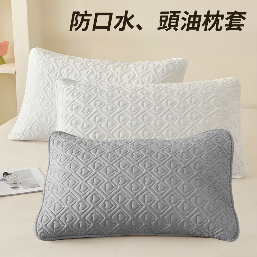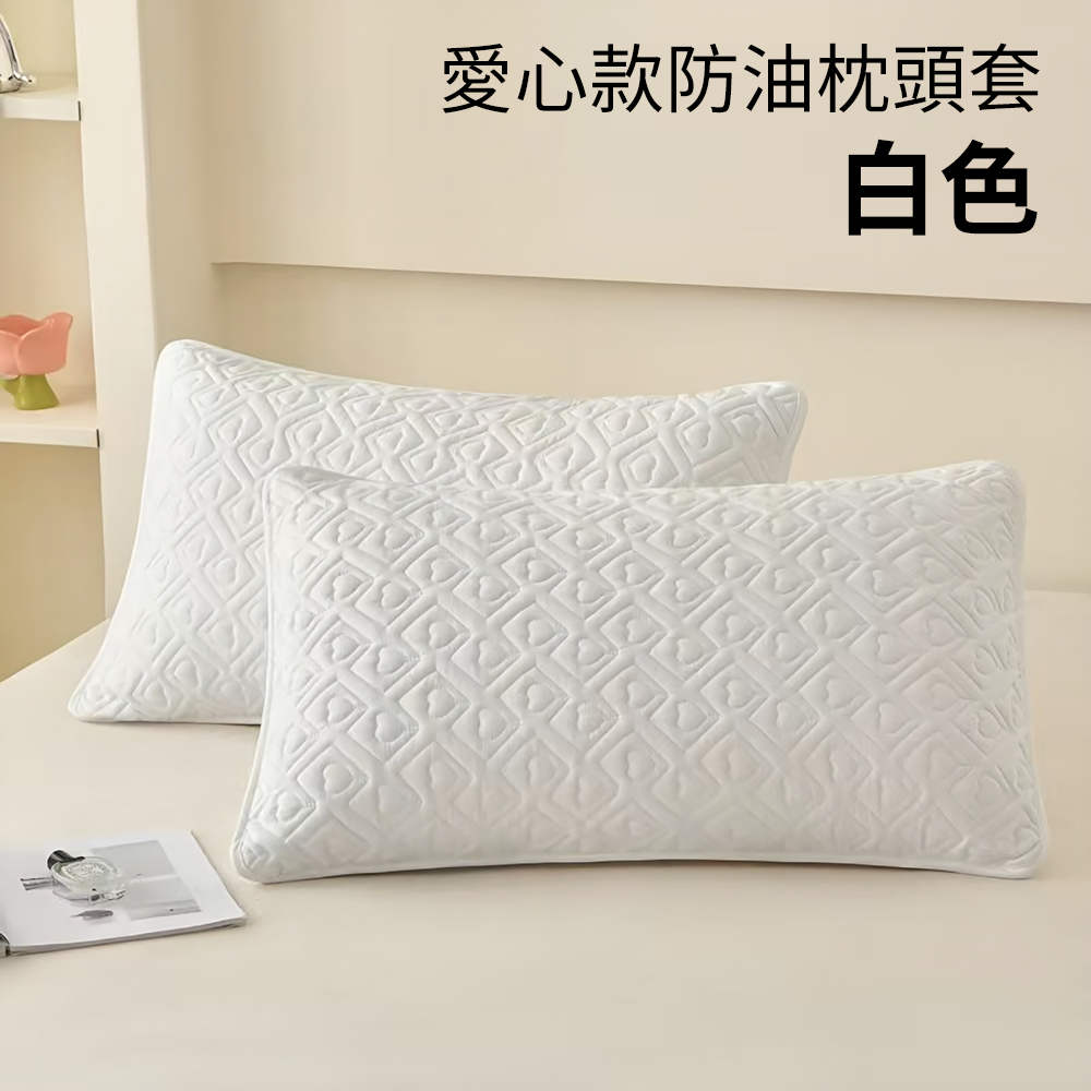 愛心款防水枕套 防頭油枕套 枕头袋 枕芯保護套 隔離枕套 白色 [平行進口] HK2483