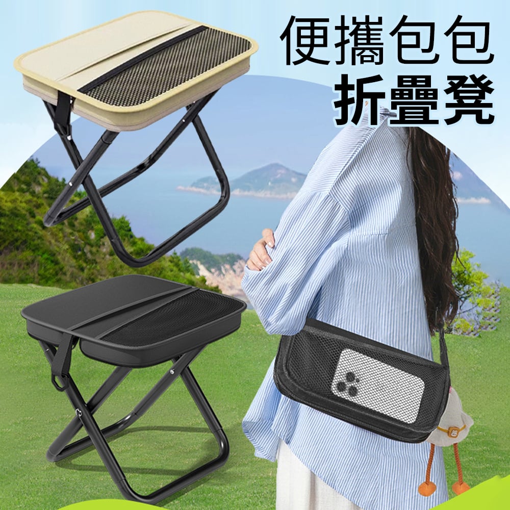 卡其色/黑色 兩色可選 挎包便攜折疊凳 穩定承重、不搖晃、便攜收納 一背即走,一開即坐,超方便 用途:露營、野餐、聚會、排隊等