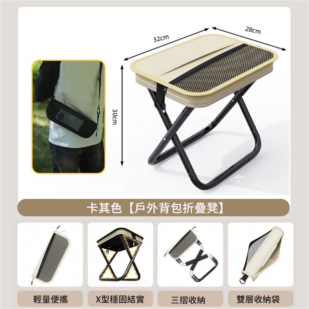戶外背包折疊凳 排隊凳 露營凳 野餐凳 手提包包凳 凳子 卡其色 [平行進口] HK2533