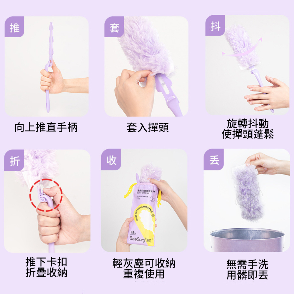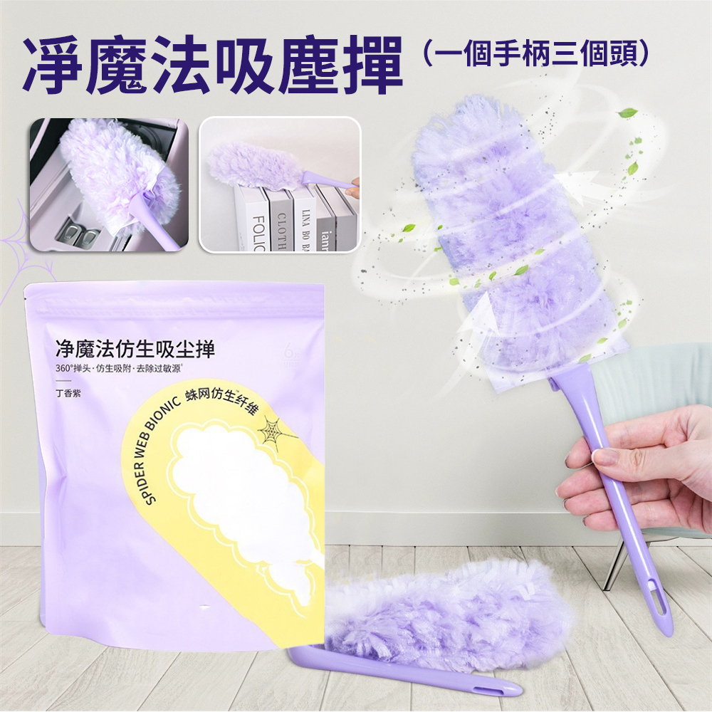 靜電除塵掃 (一個手柄+三個清潔撣頭) 蛛網仿生纖維 除塵不揚灰 一掃即凈 小巧易收納 免洗可拋式,方便更衛生 無需手洗 車內、書本、杯架、家居家電、邊緣死角等清潔