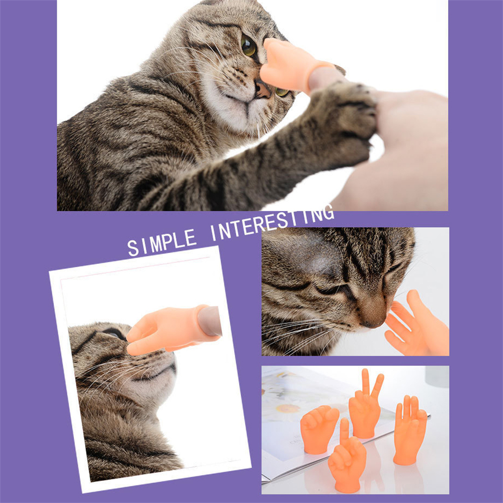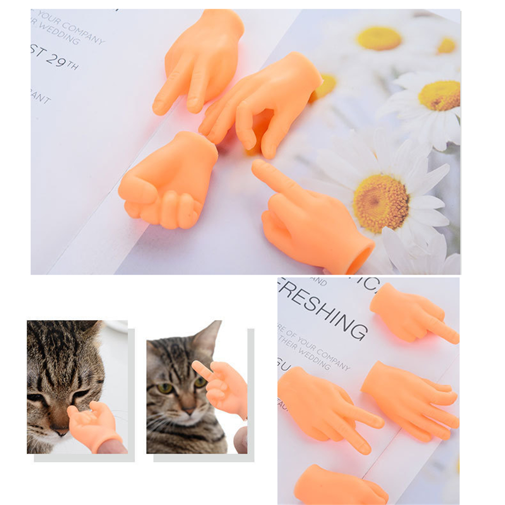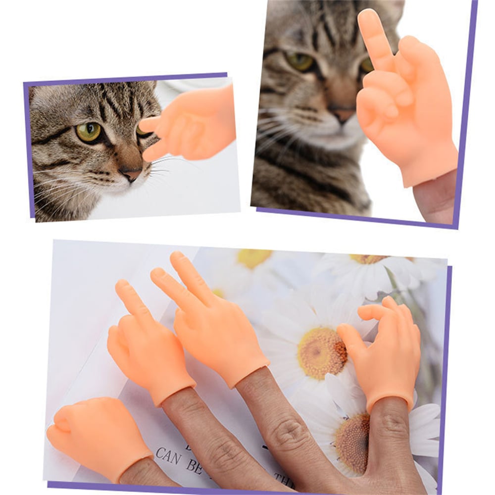 搞怪手勢指套 擼貓搞怪玩具 貓咪互動 按摩逗貓 迷你指套 6個裝 [平行進口] HK2514