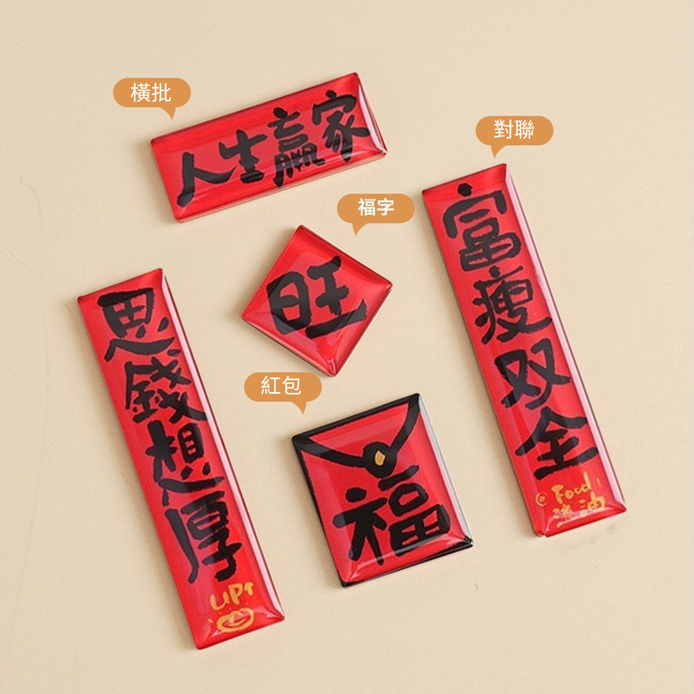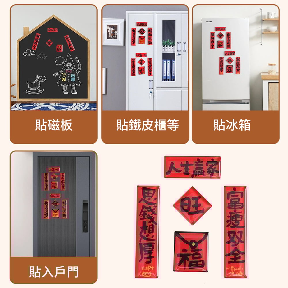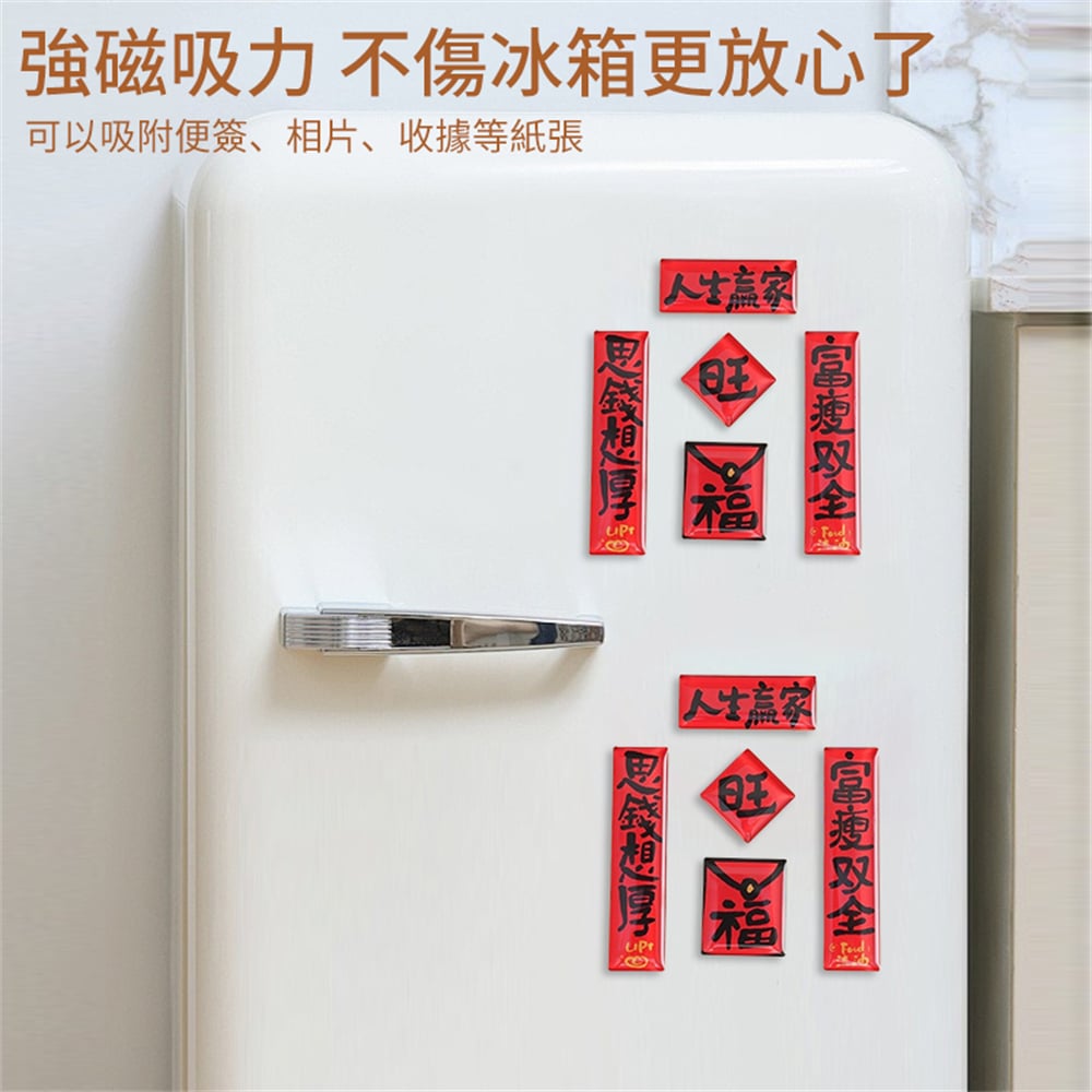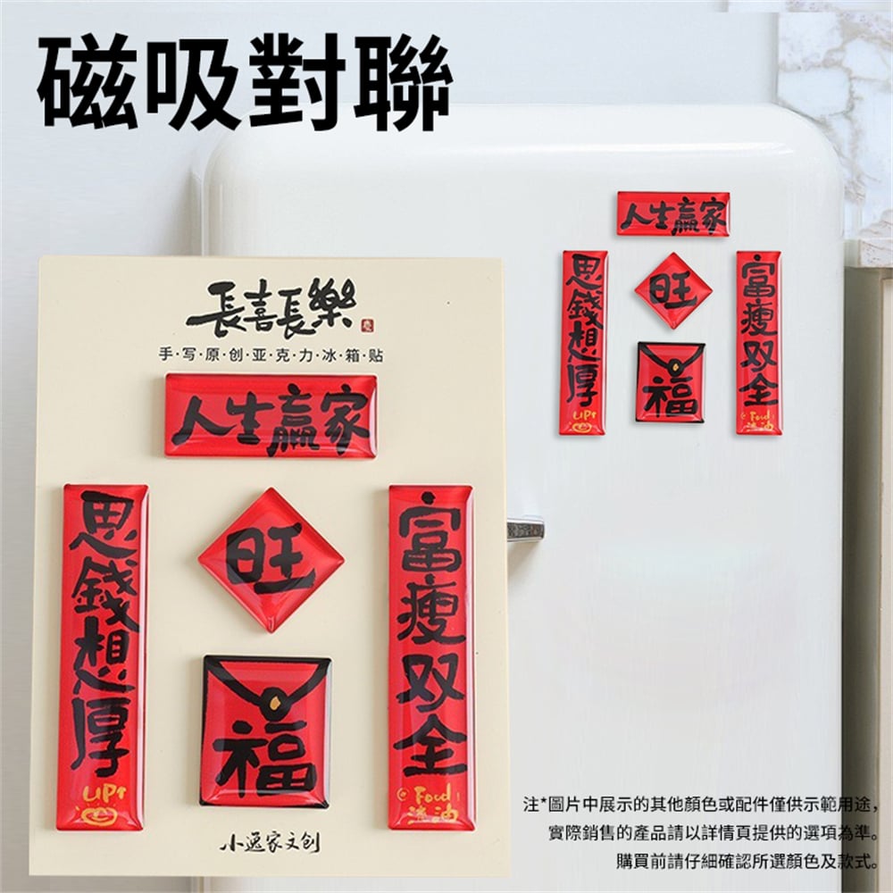 新年雪櫃磁吸對聯 冰箱貼 趣味春聯 雪櫃磁吸貼 創意裝飾 [平行進口] HK2621