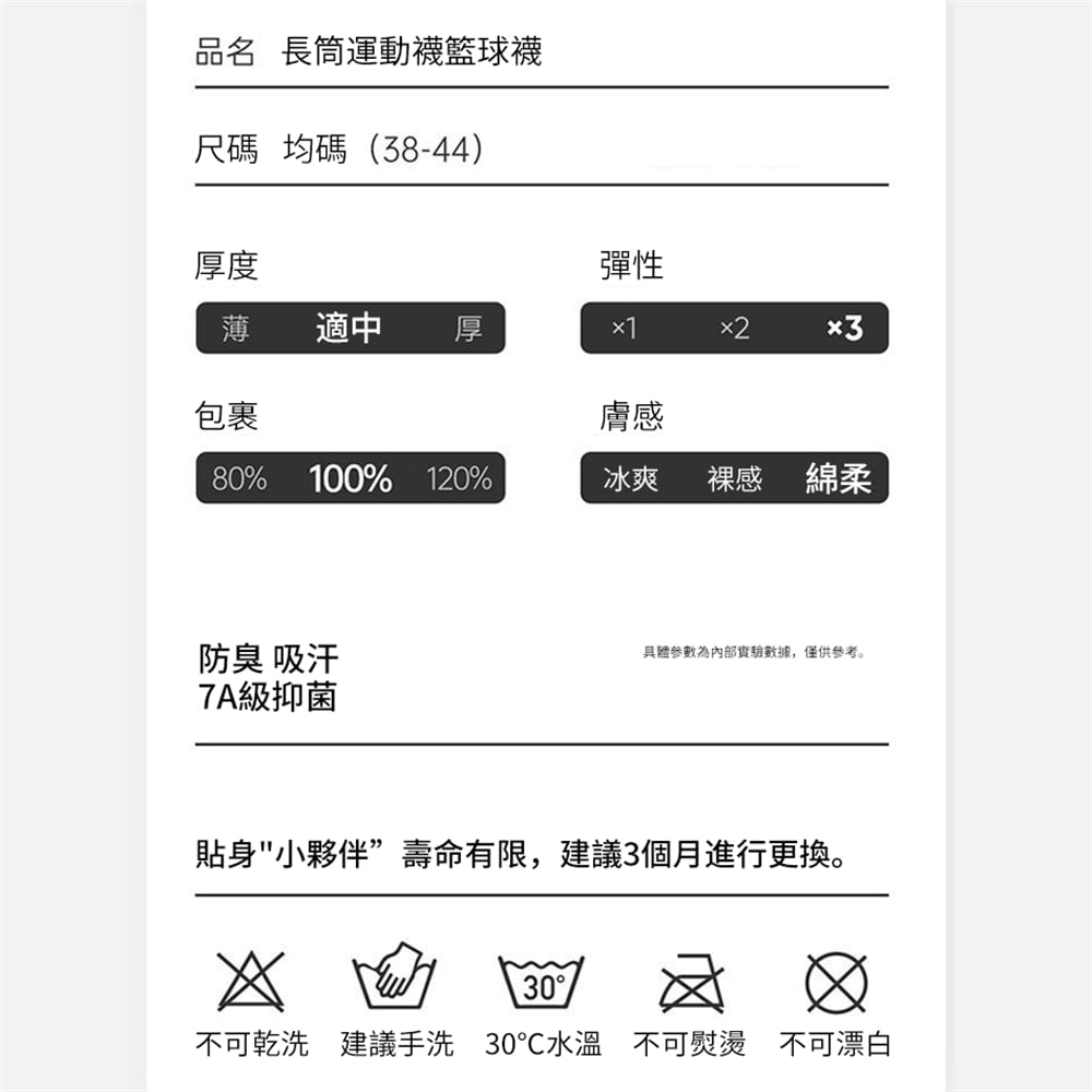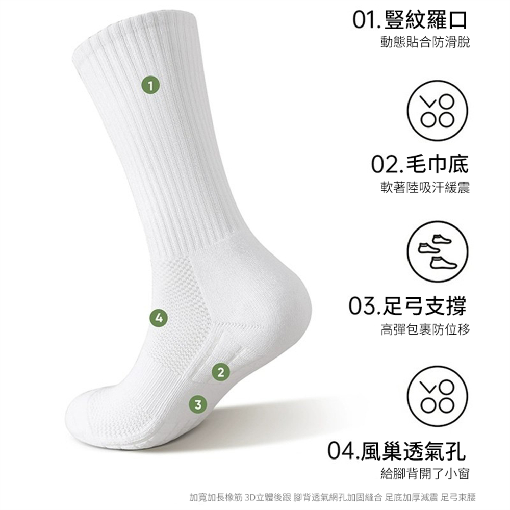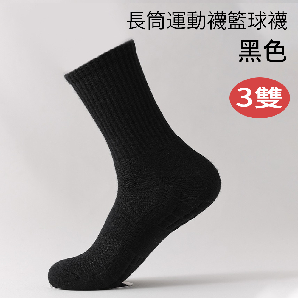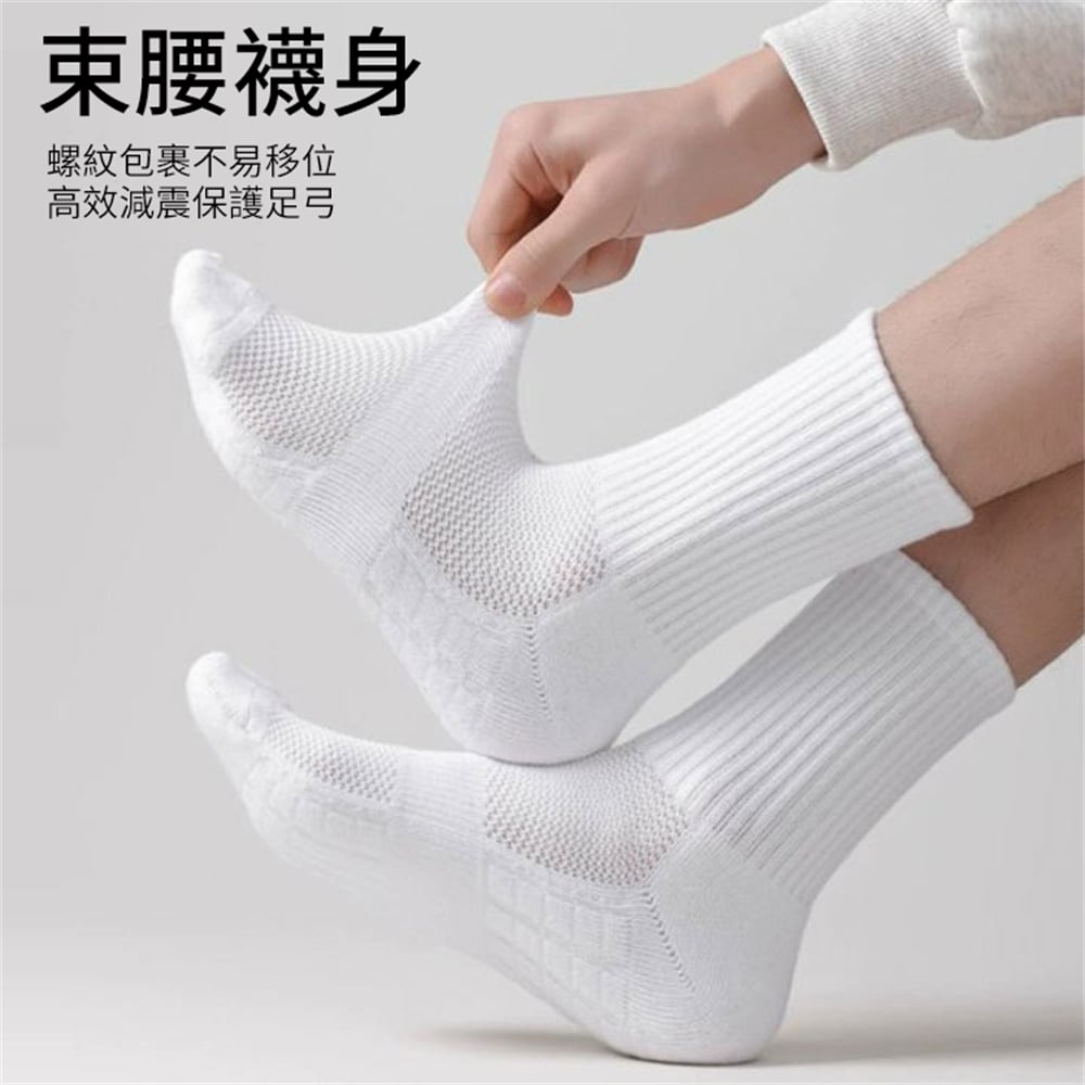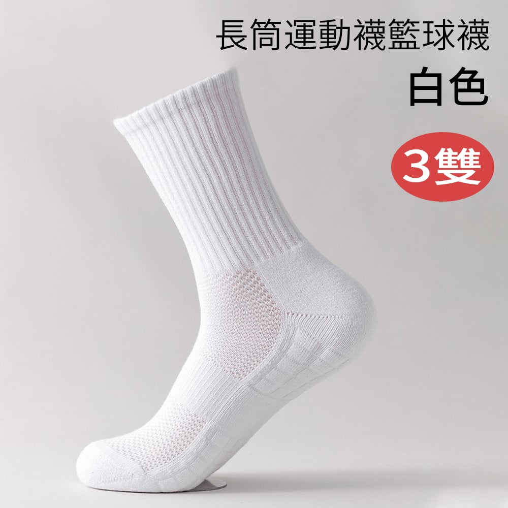 毛巾底襪子 純棉吸汗 長襪 減震 長筒運動襪 籃球襪 白色3對 [平行進口] HK2509