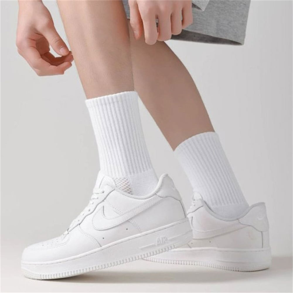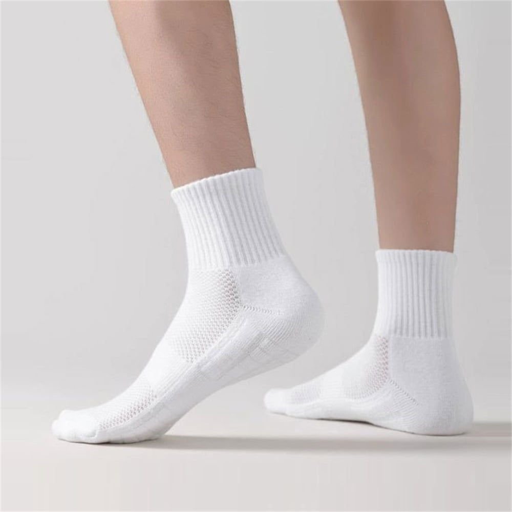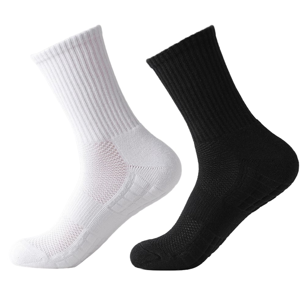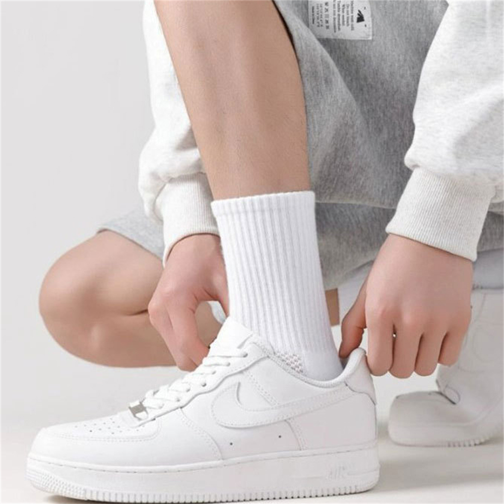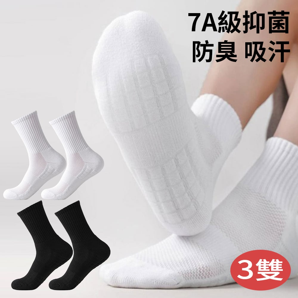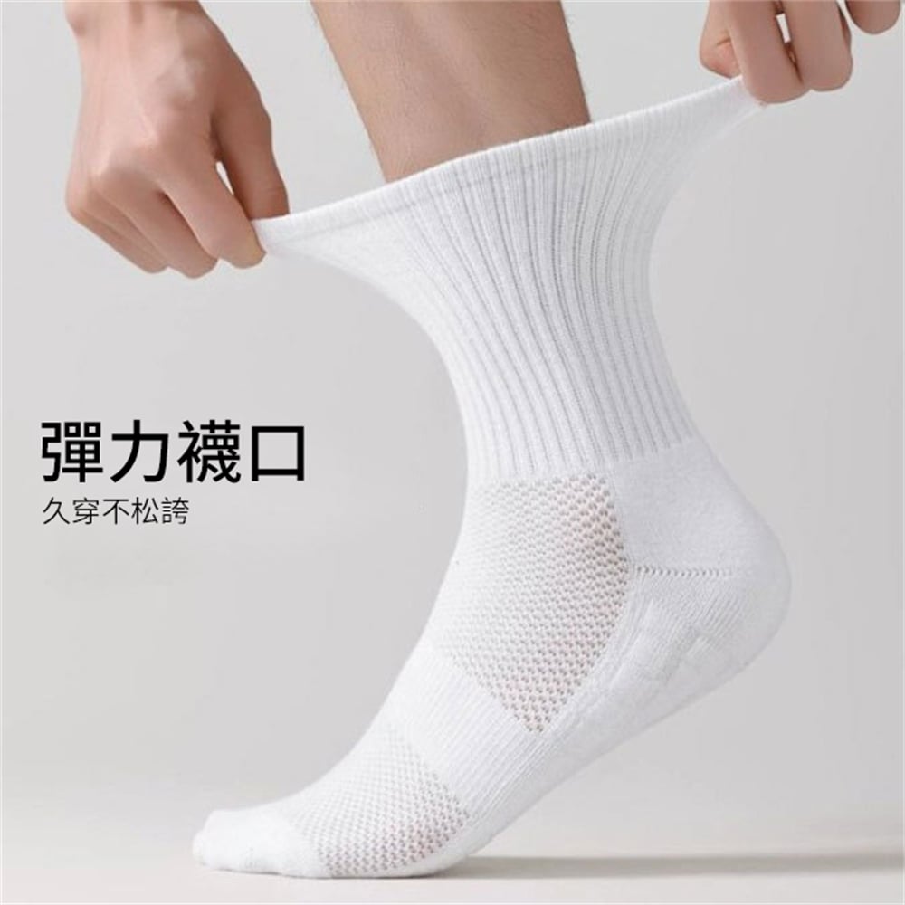 毛巾底襪子 純棉吸汗 長襪 減震 長筒運動襪 籃球襪 白色3對 [平行進口] HK2509