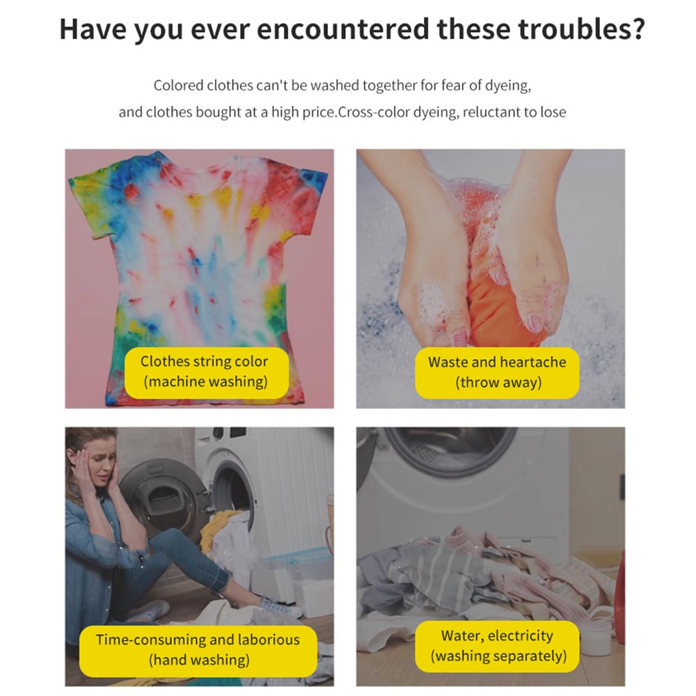 淺色衣物染色37% 使用後串色風險降至1.3% 每次洗衣放入 1-2 片與衣物共同投入洗衣機使用後變為灰黑色屬正常現象不可重複使用