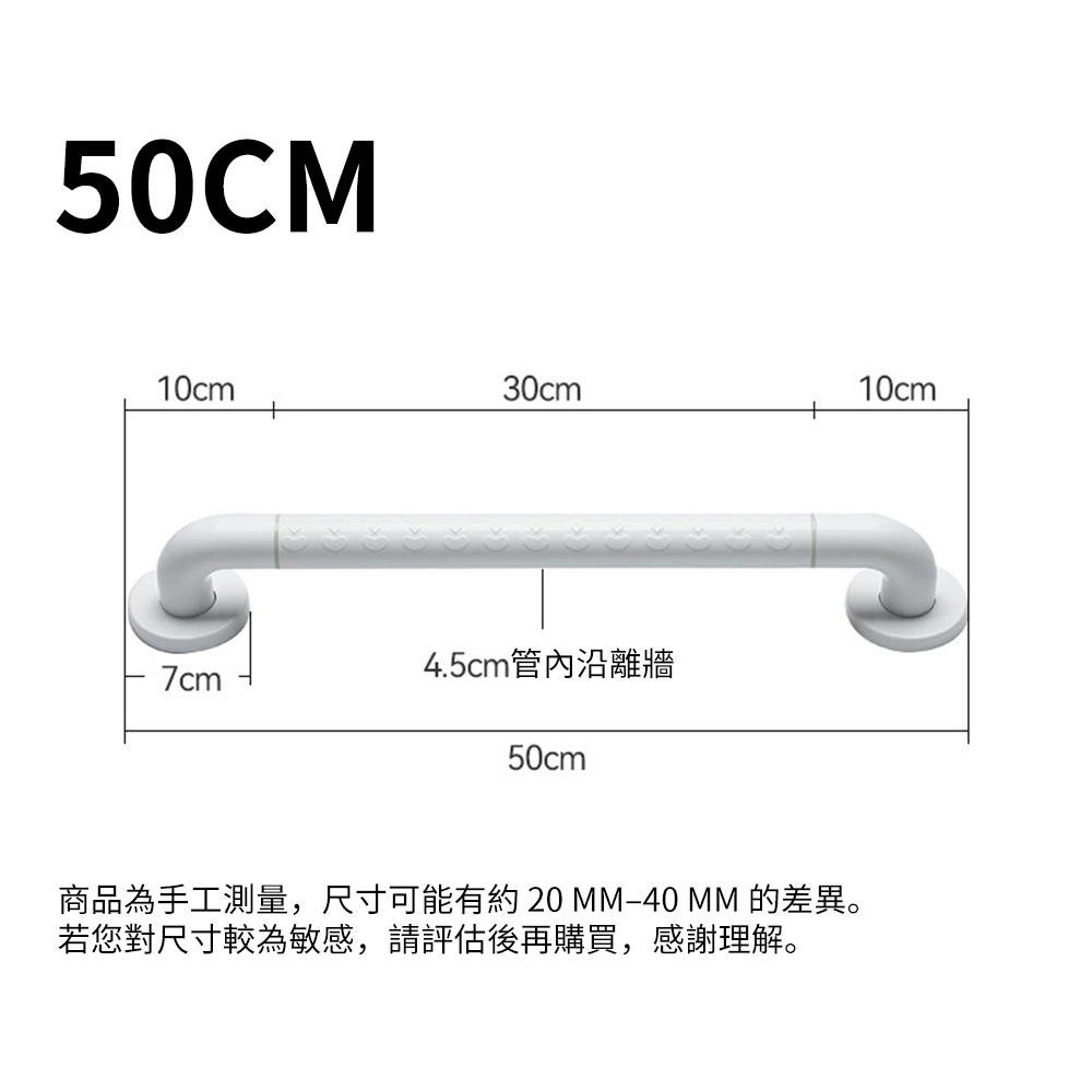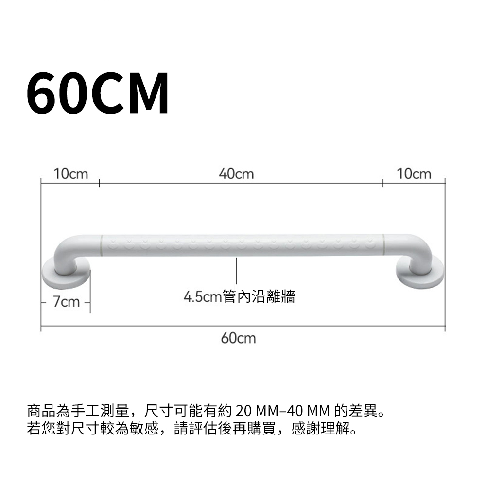 40cm/50cm/60cm 三個尺寸可選 易安裝、承重強、加厚底座 立體防滑顆粒設計 有效增加阻力防止意外發生 【場景】:浴室、衛生間、醫院走廊過道、養老院、樓梯、福利院、公寓、公廁、公共衛生間等