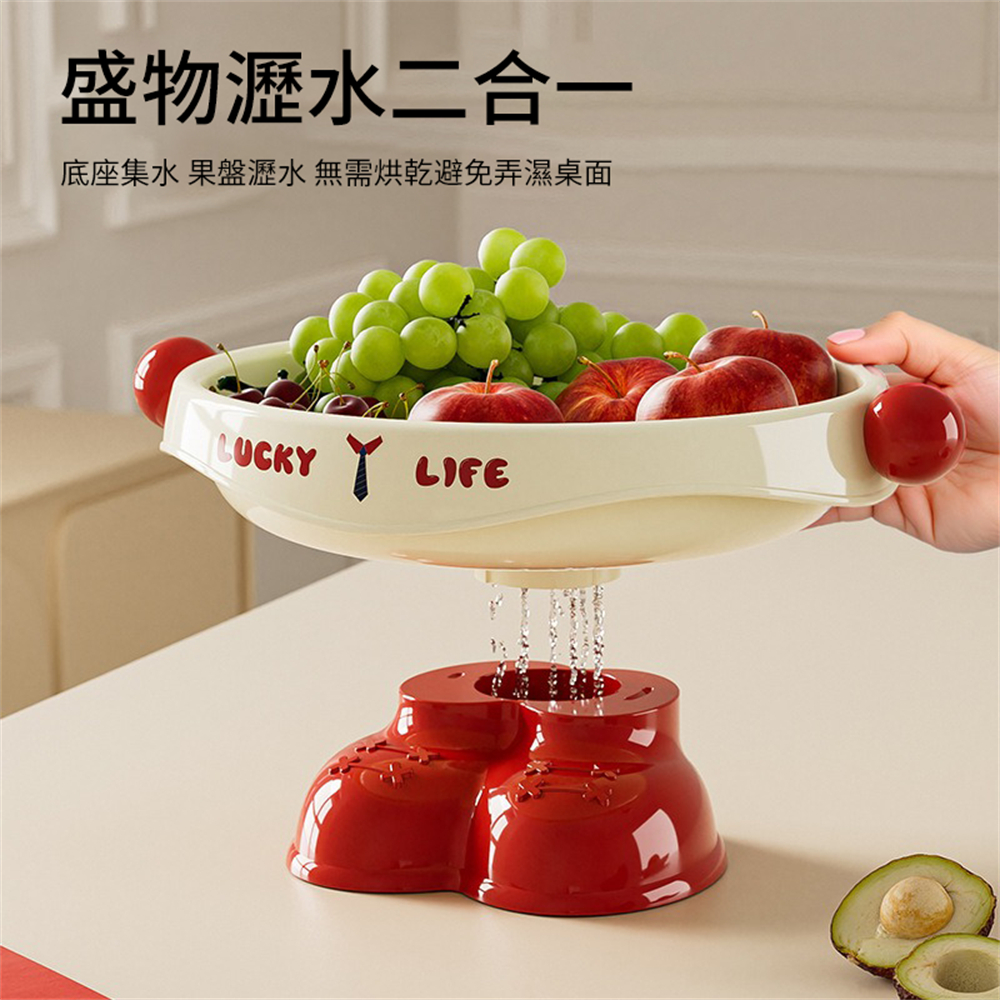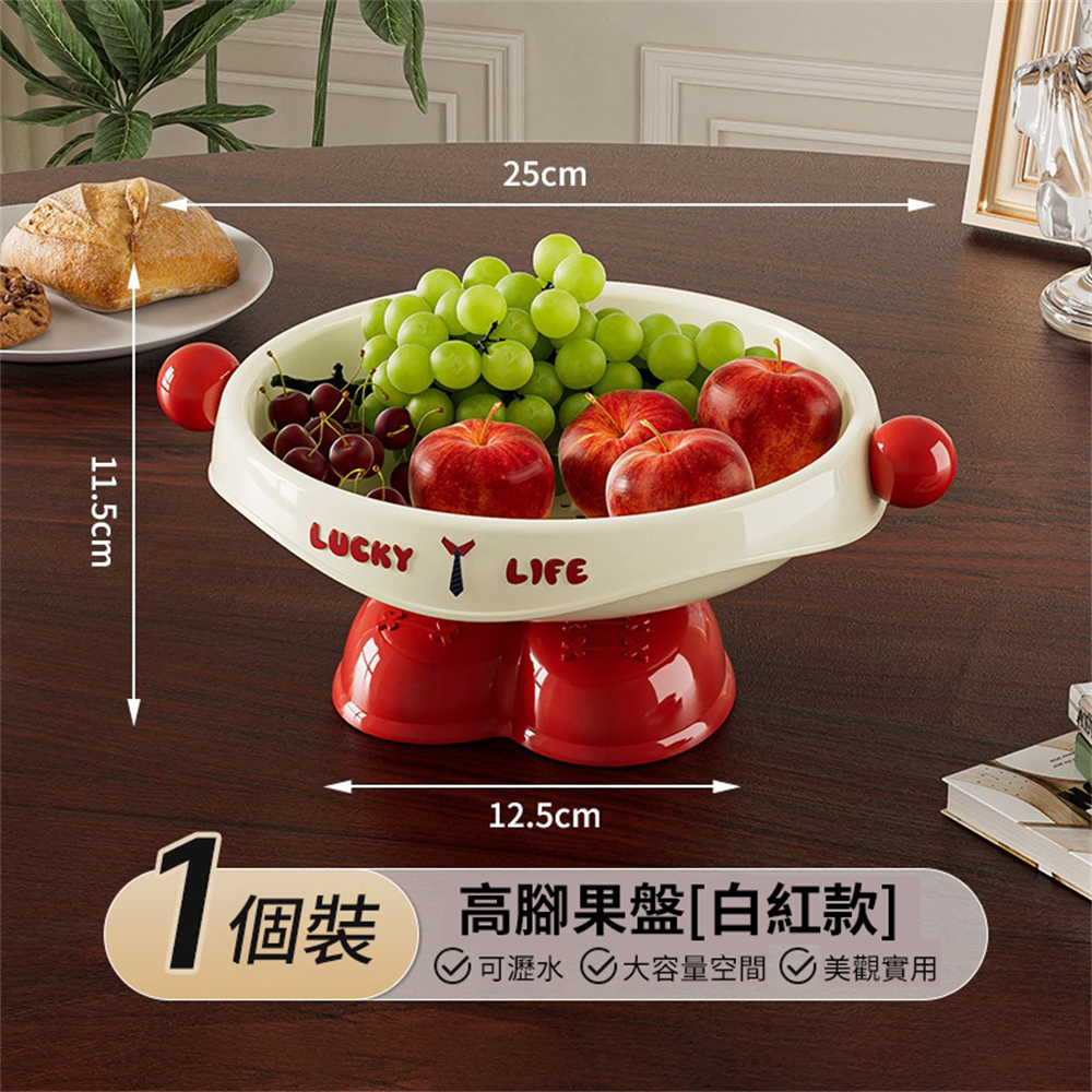 白色/紅色 兩色可選 輕奢風格 美觀實用 多巴胺配色 增添活力 盛物瀝水二合一 底座集水 果盤瀝水 無需烘乾 避免弄濕桌面 可放乾果、零食、糖果、水果、餅乾等