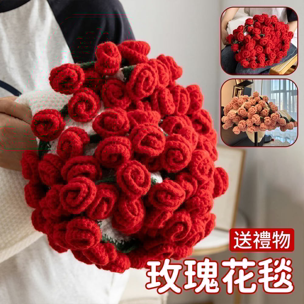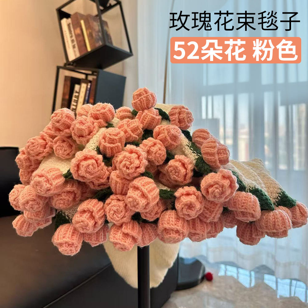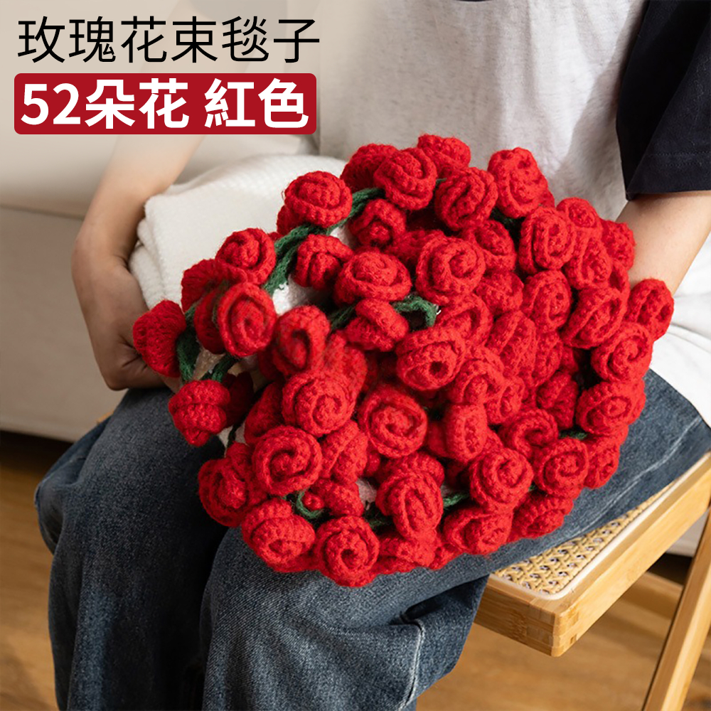 玫瑰花毯子 毛毯 送禮物 散水禮物 情人節 成品玫瑰花束 保暖毛巾被 毛氈 紅色52朵花 [平行進口] HK2479