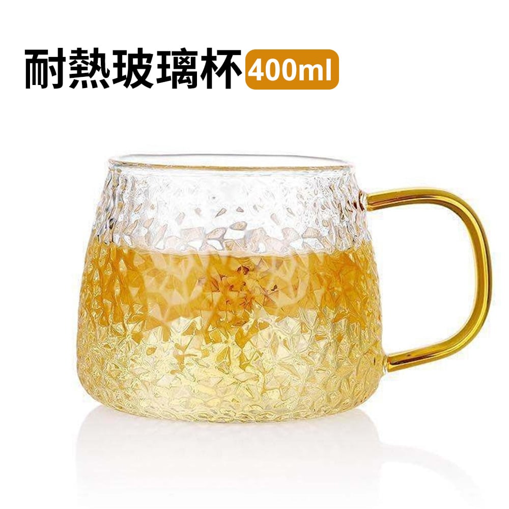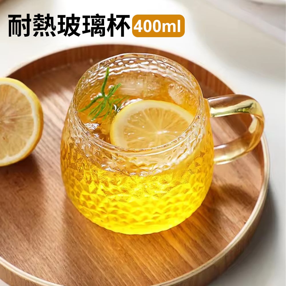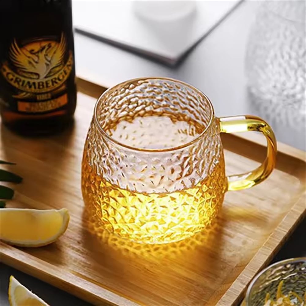 耐熱玻璃杯 帶把手杯子 咖啡杯 牛奶杯 果汁杯 茶杯 飲料杯 菠蘿紋 [平行進口] HK2614