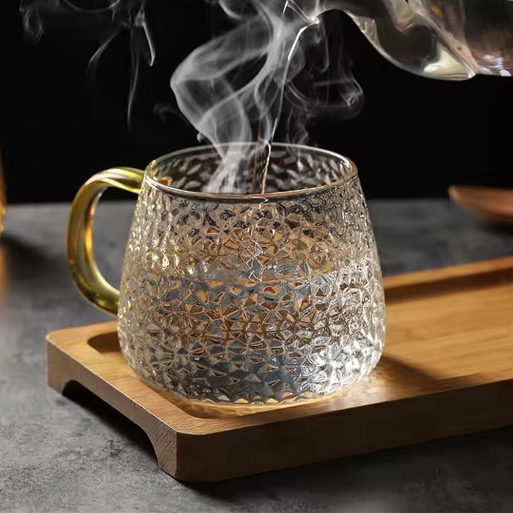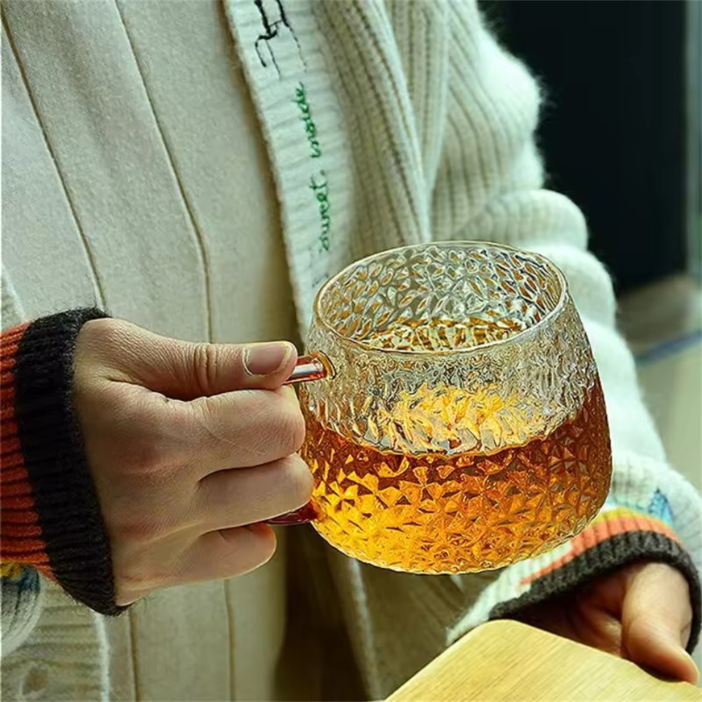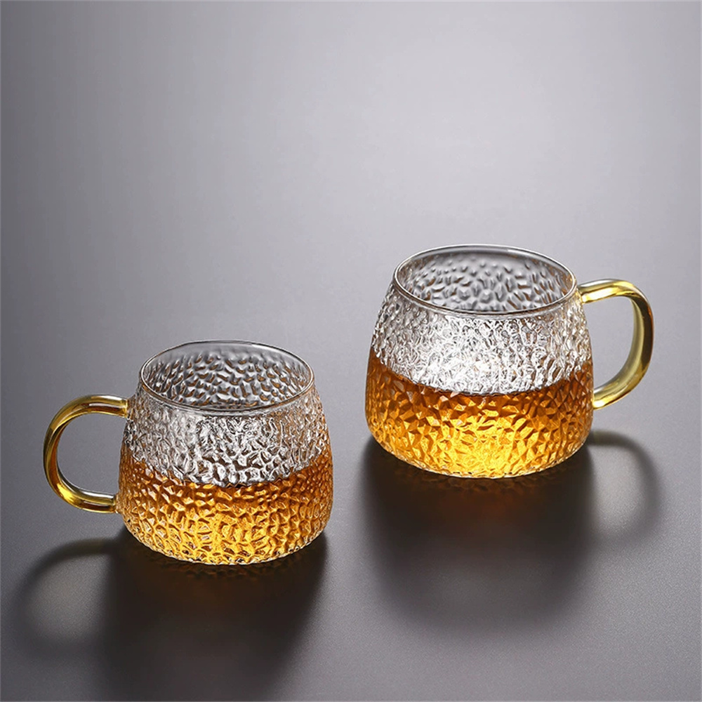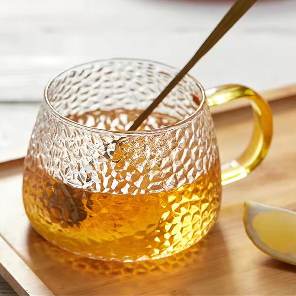 耐熱玻璃杯 帶把手杯子 咖啡杯 牛奶杯 果汁杯 茶杯 飲料杯 菠蘿紋 [平行進口] HK2614