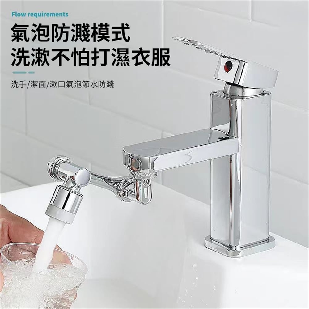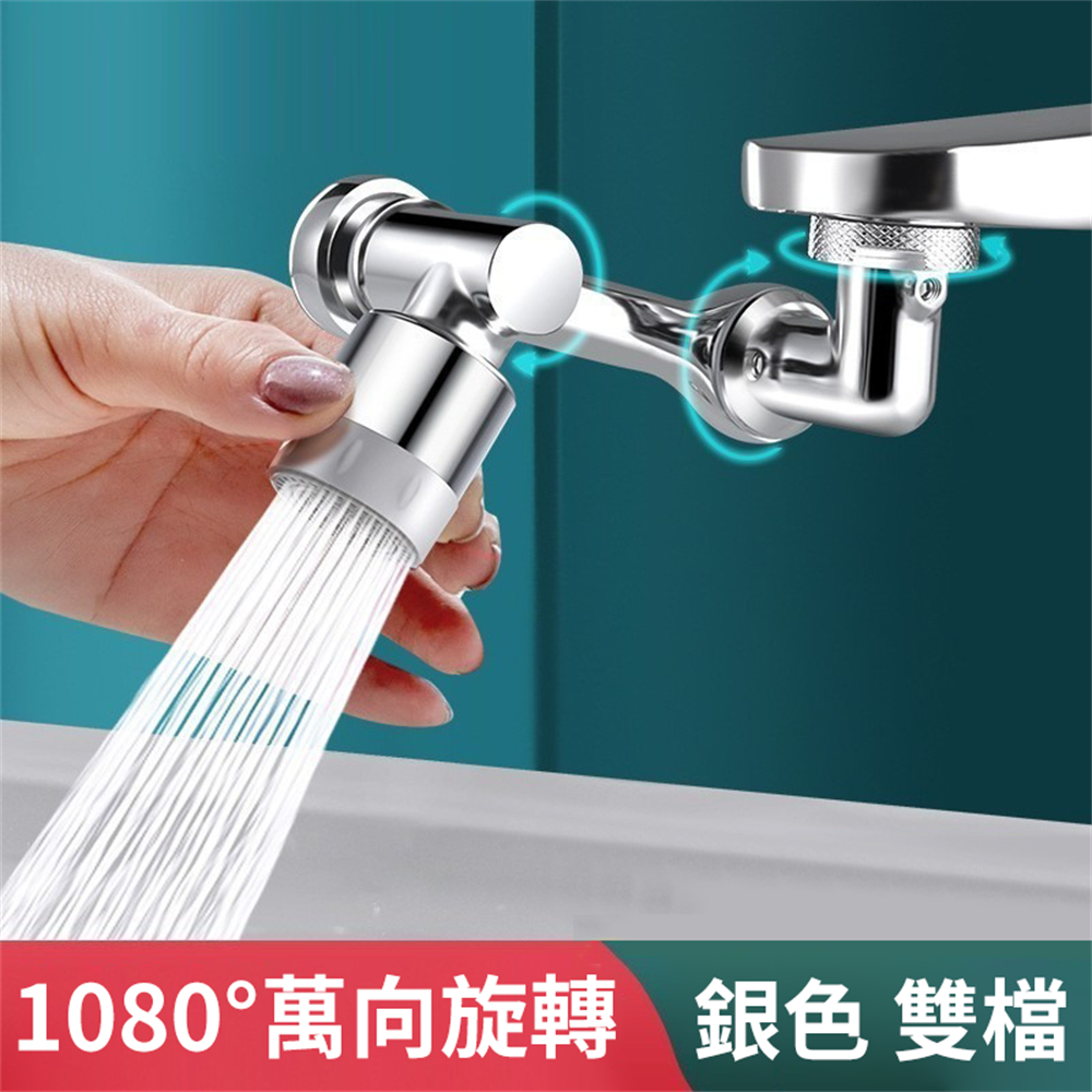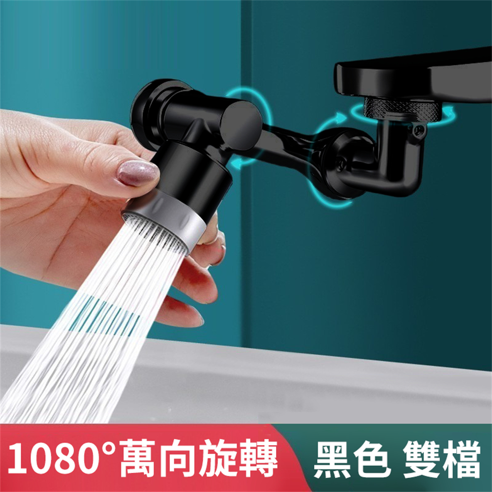 銀色/黑色 兩色可選 快接洗漱神器 1080°萬向機械水龍頭 萬向出水、防飛濺設計、雙出水模式、合金材質 增壓氣泡出水、強勁花灑出水