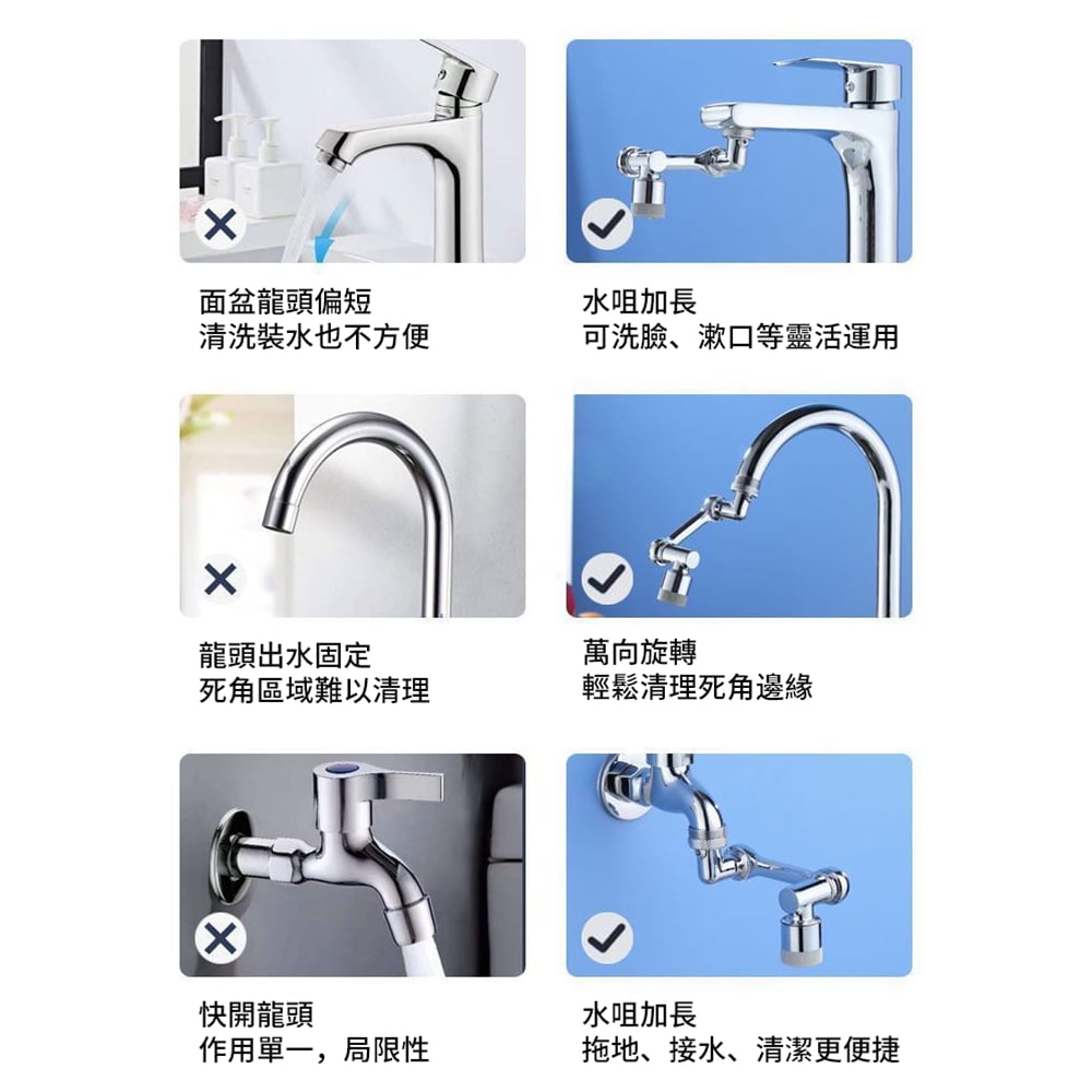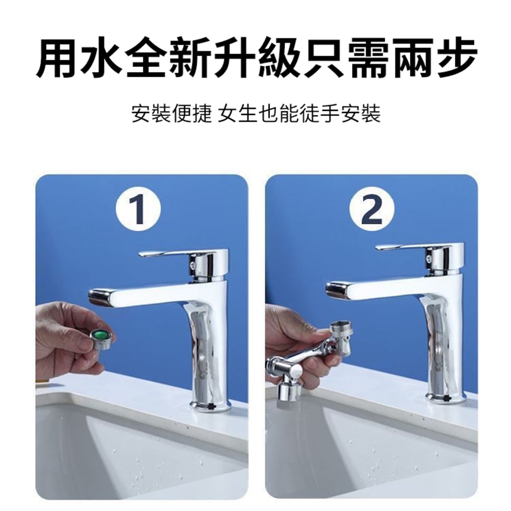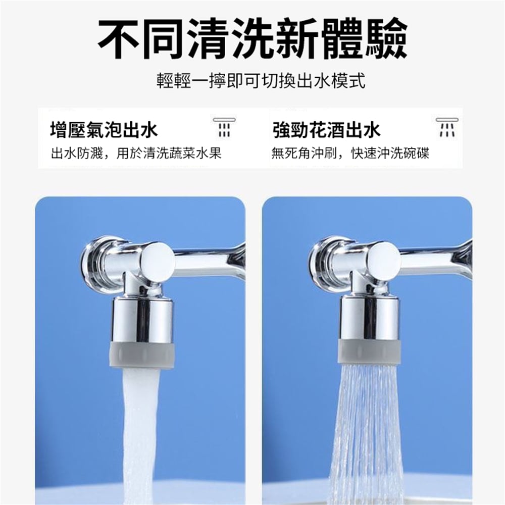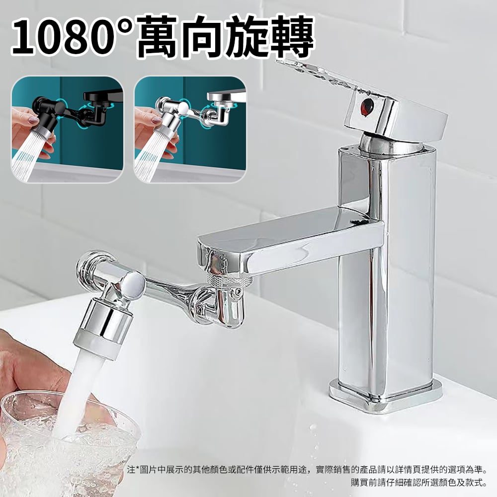 銀色/黑色 兩色可選 快接洗漱神器 1080°萬向機械水龍頭 萬向出水、防飛濺設計、雙出水模式、合金材質 增壓氣泡出水、強勁花灑出水