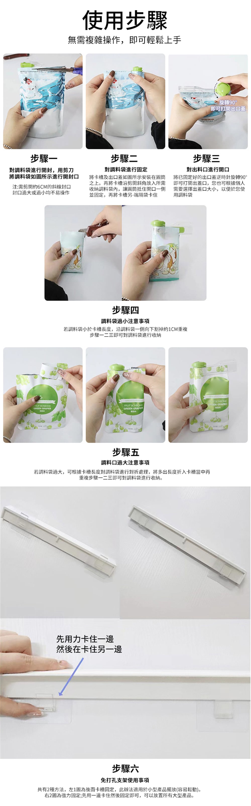 調料包掛壁式收納架 6孔款整齊收納 60°撥動取物 方便快捷 可收納市場各種規格調料包 免打孔掛鉤設計 承重能力強