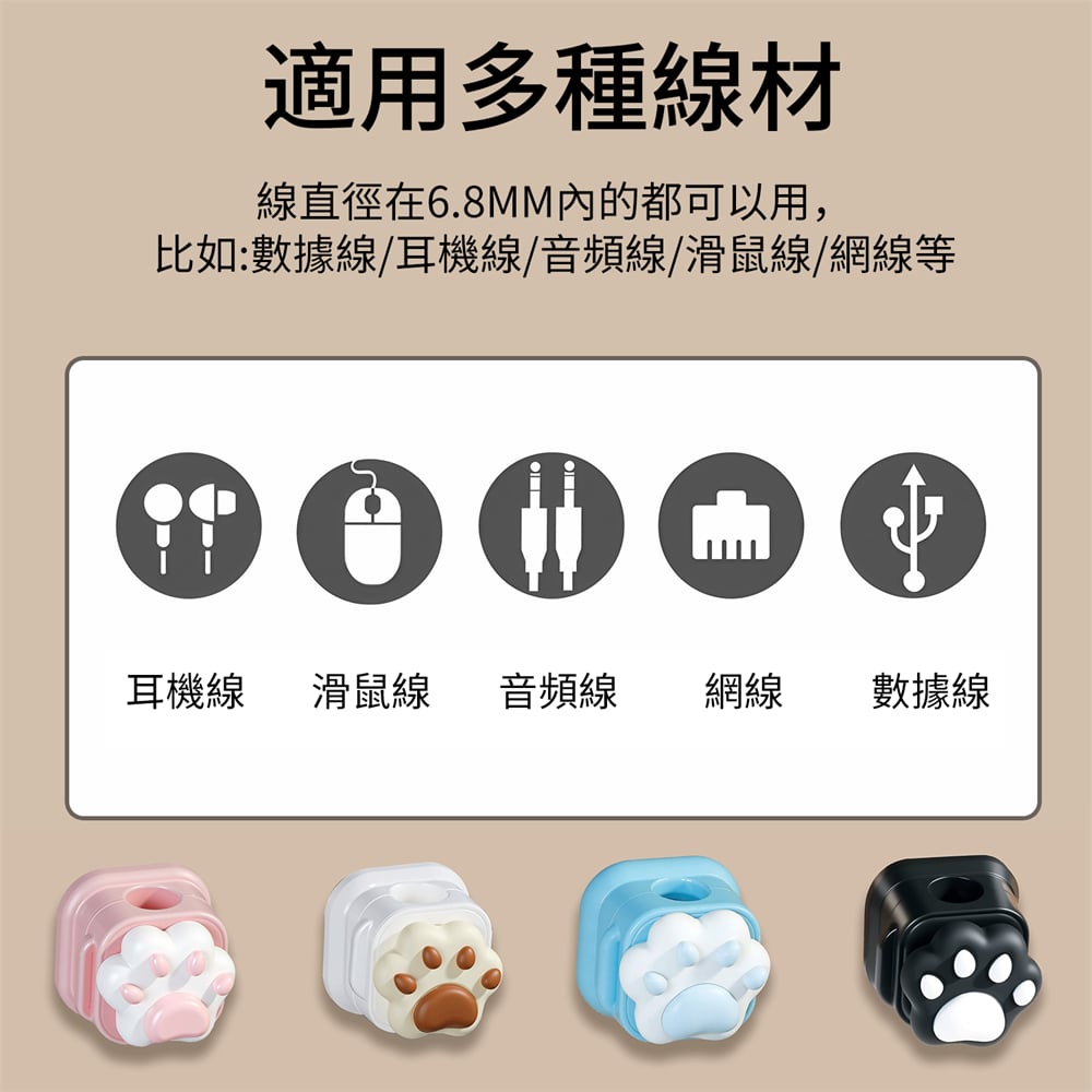 粉色/黑色/色/白色 四色可選 特點: 磁吸,耐用,安全材質,小巧方便。 適用廣泛 多種材質表面可用 適用多種線材 線直徑在 6.8mm 內的都可以用,例如:數據線 / 耳機線 / 音頻線 / 滑鼠線 / 網線等