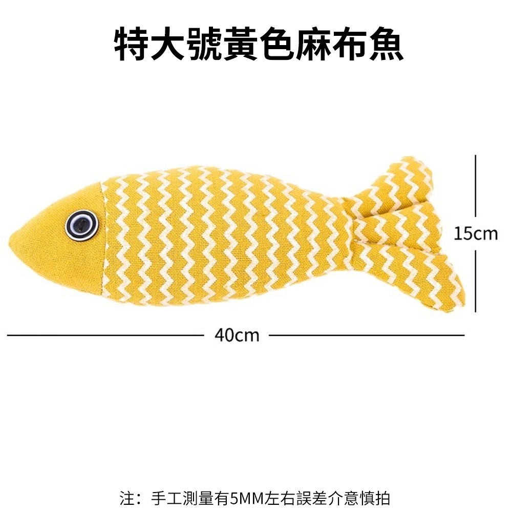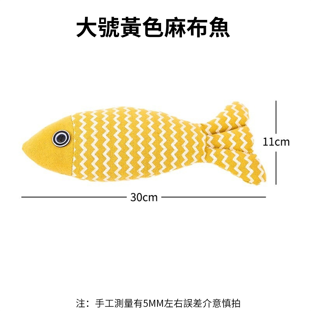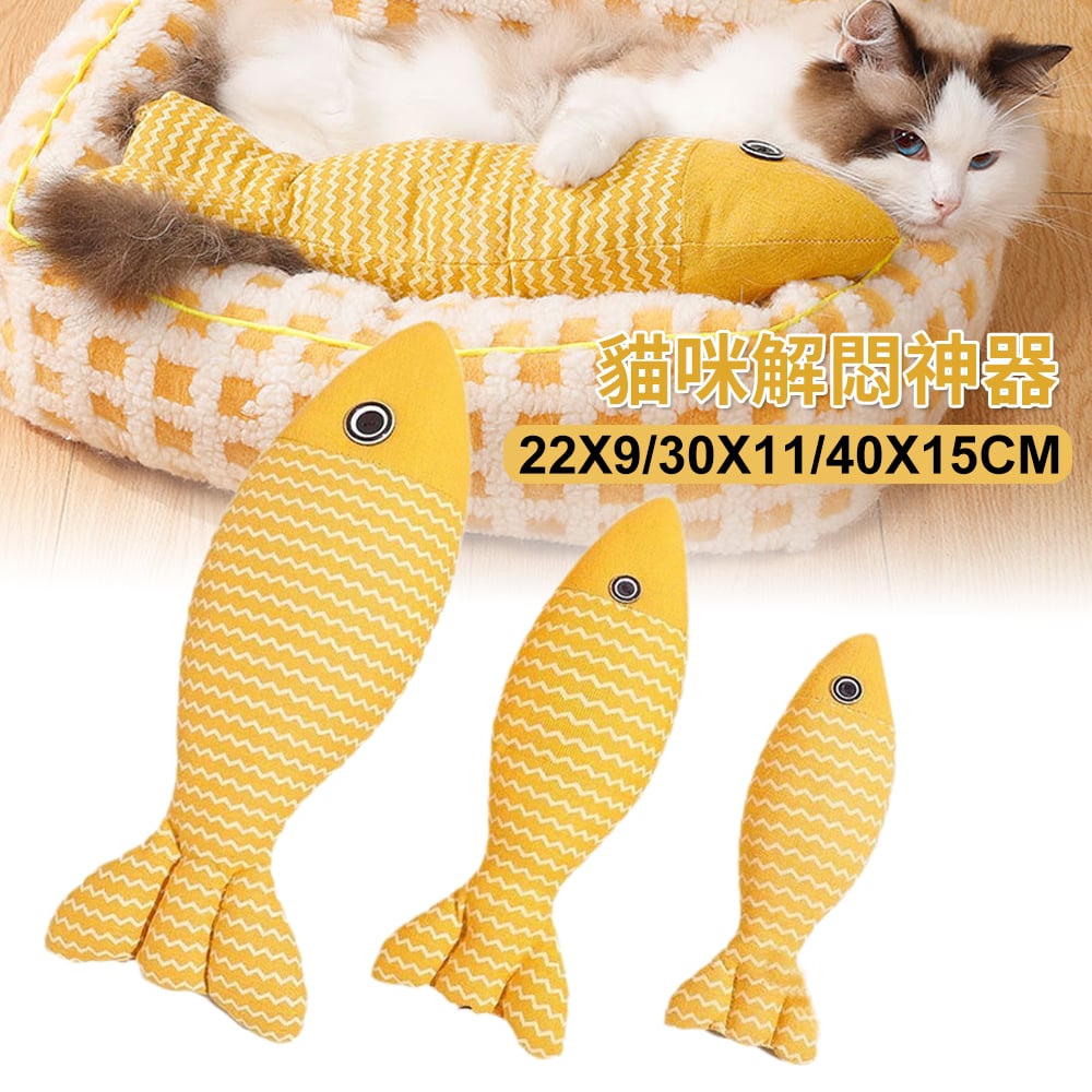 S/M/L 三款尺寸可選 S:22*9cm M:30*11cm L:40*15cm 耐咬耐抓 解悶神器 主人不在家時陪伴好物 魚形外觀,有趣不膩,磨牙潔齒 柔軟麻布 防靜電 不易扯壞
