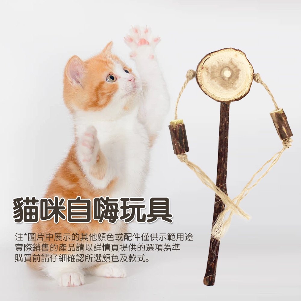 逗貓植物玩具 木天蓼棒+棉繩 小於 6 個月月齡的幼貓或孕貓不建議使用 使用一段時間後,可用小刀削掉外層,恢復效果 80% 貓咪喜愛木天蓼,少數貓咪卻對其無感,謹慎購買 貓咪出現異常興奮、打噴嚏流口水等情況屬正常,無需擔心