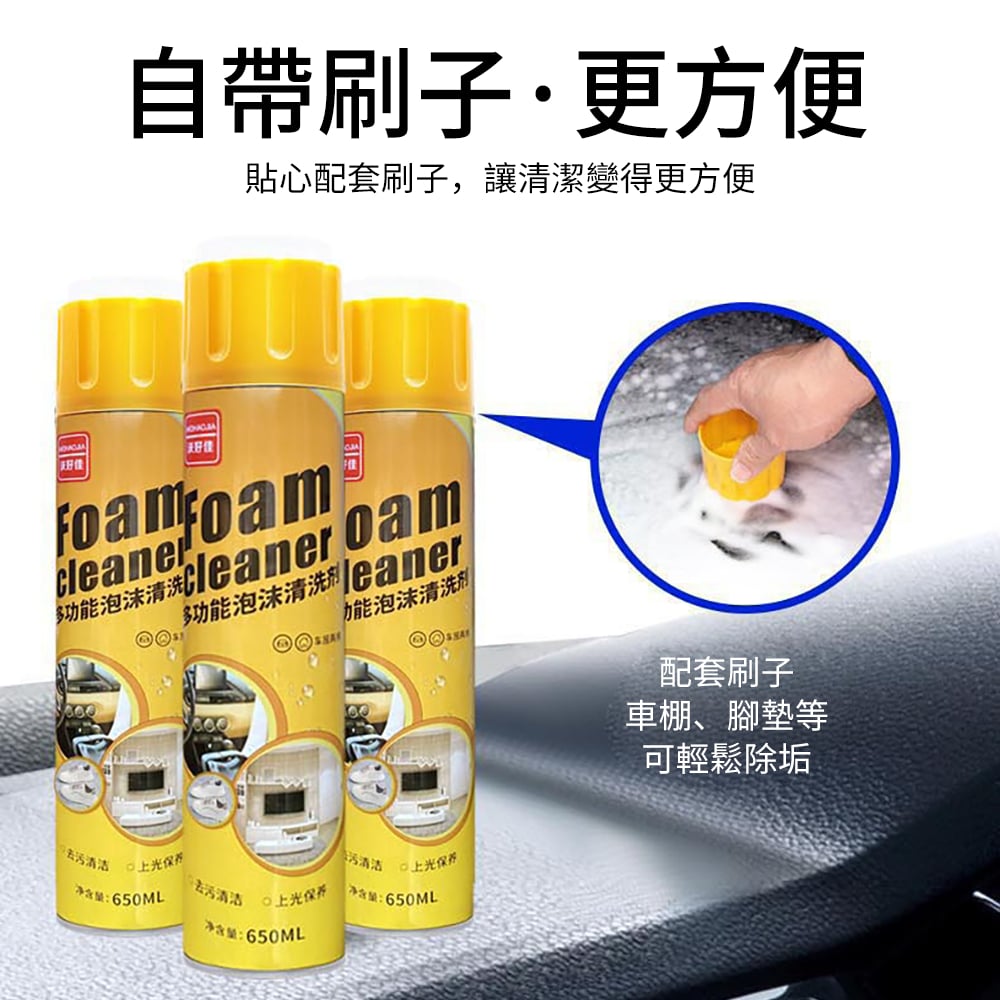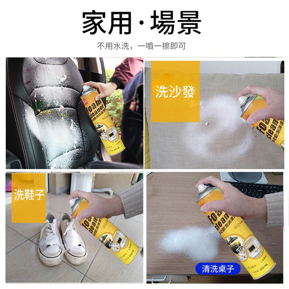 罐容量:650ml 用途:適用於汽車內飾及小白鞋、家居用品清潔 功能:快速去除污漬以及異味 免水洗、無刺激、大容量、高效去污、用途廣泛
