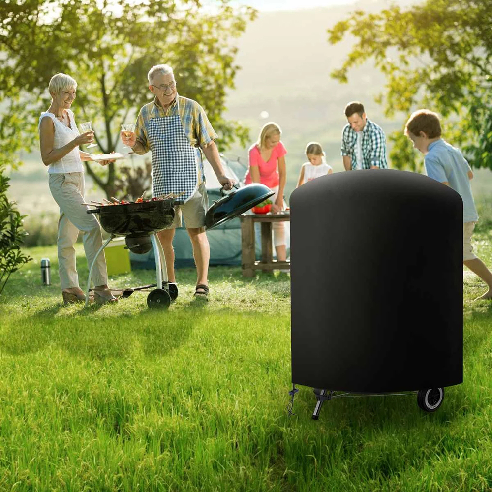 - 適用於圓形燒烤爐 - 耐用、防水、防塵 - 材質:210D 牛津布 - 顏色:黑色 - 尺寸:約 58x77cm 包裝清單: 1x 燒烤爐蓋 1 個儲物袋