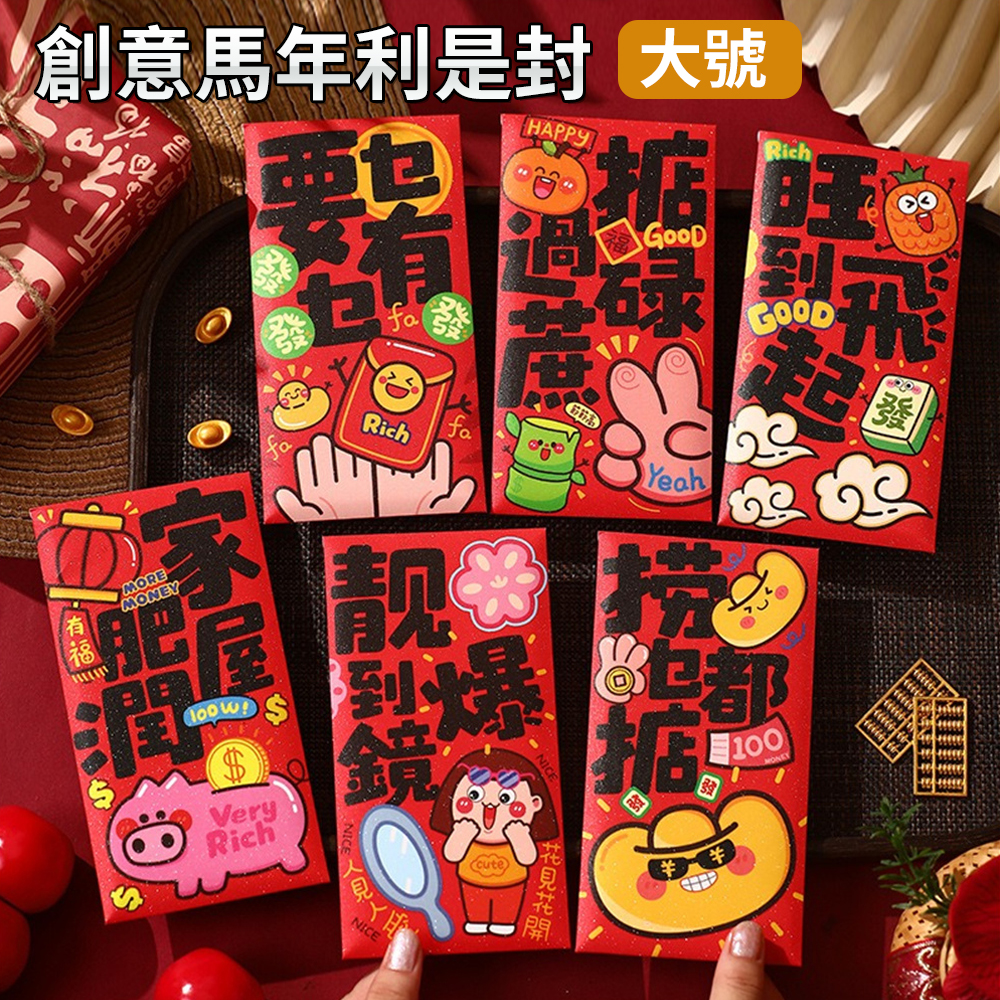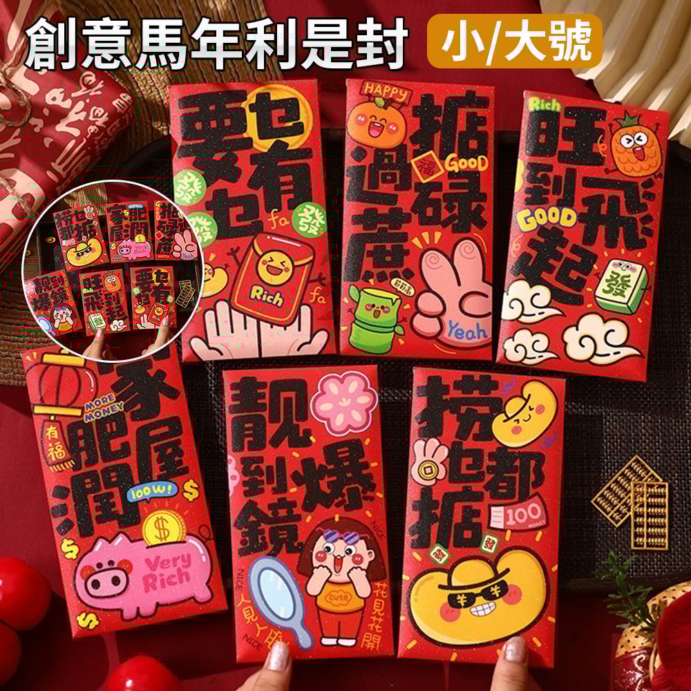 大號/小號 兩款可選 馬年創意利是封 6個裝 適用用於:壓歲、活動、公司商務、新年紅包等等
