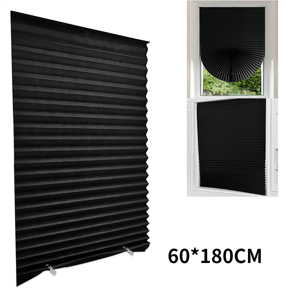 60*180cm白色 免打孔全遮光黏貼式百葉紙窗簾 雙面使用全遮光百葉紙窗簾 免鑽孔快速安裝汽車車窗簾 [平行進口] HK1222
