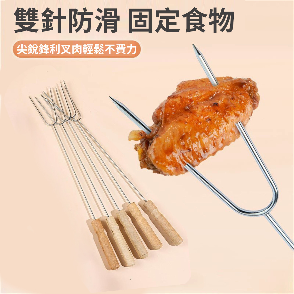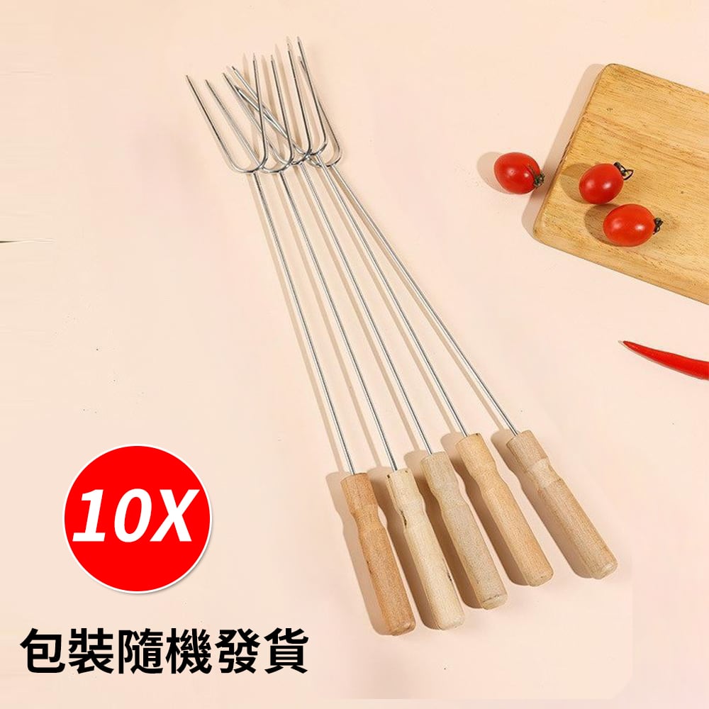 U型燒烤叉 雞翼叉 木柄防燙叉 戶外露營烤肉鐵簽 烤串叉 10支裝 [平行進口] HK2290