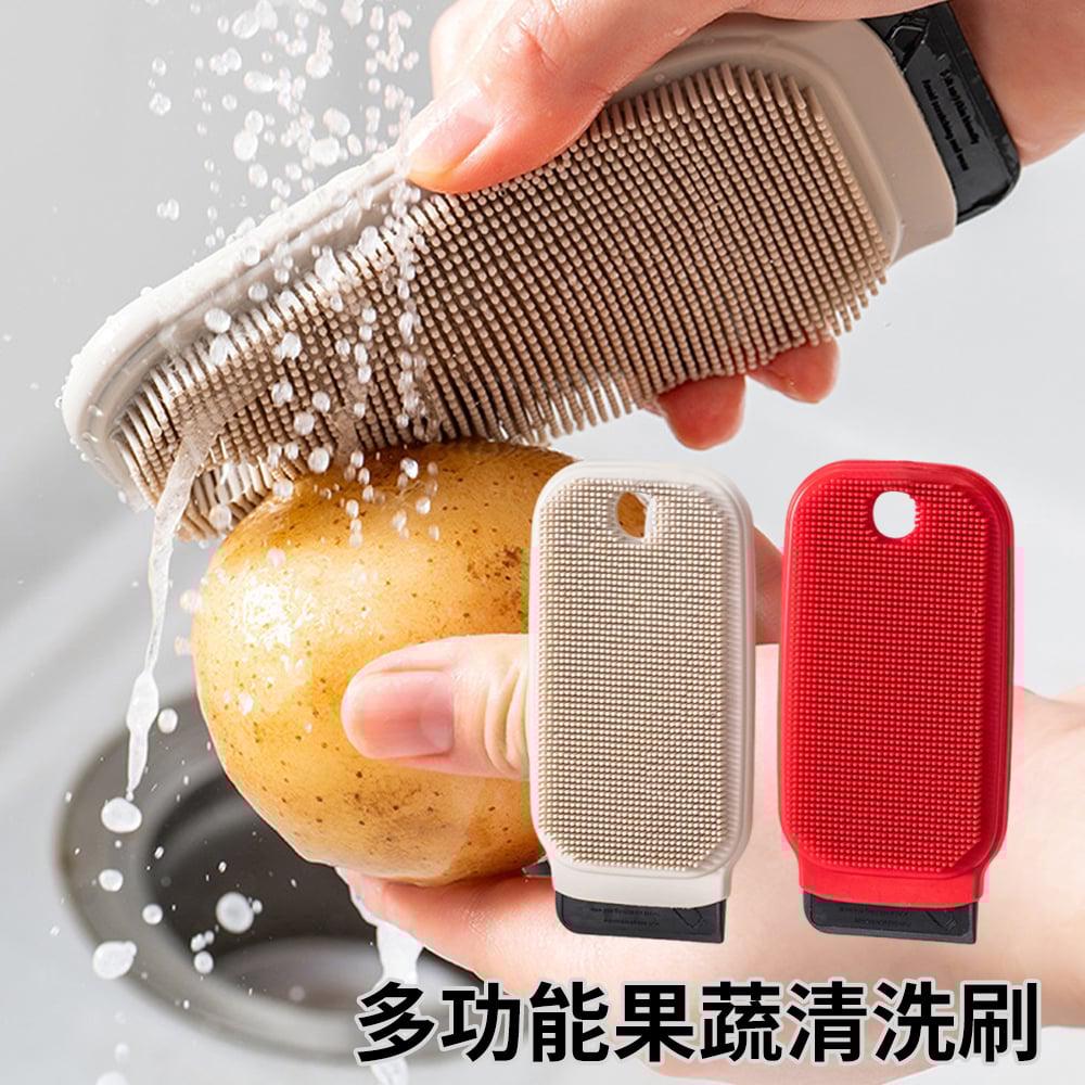 果蔬清潔刷 水果刷 薯仔刷 瓜果刷 縫隙刷 洗刮一體 可彎曲刷子 紅色 [平行進口] HK2653